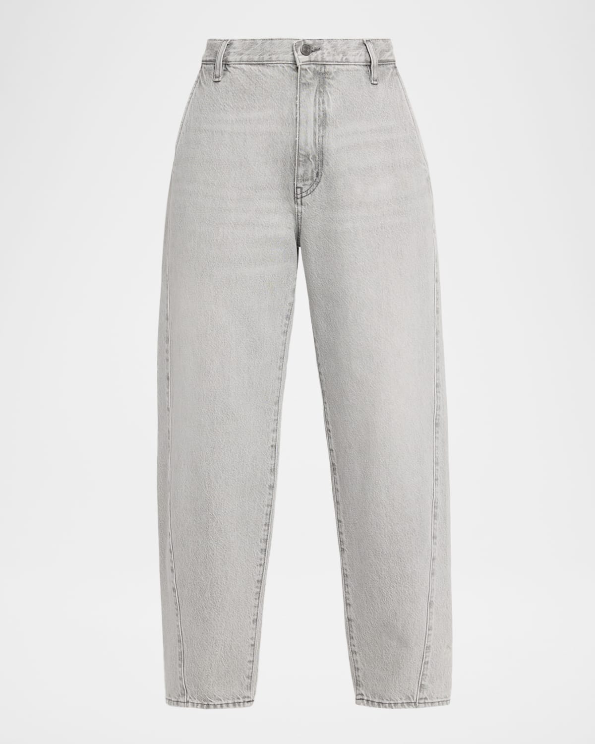 FRAME "Candle" ridid denim trouserstyle pants cut with a curved outseam that finishes at the ankle Approx. measurements: 11.5" rise; 28" inseam Mid rise Fourpocket style Ankle length Straight legs Cotton Machine wash cold Made in USA