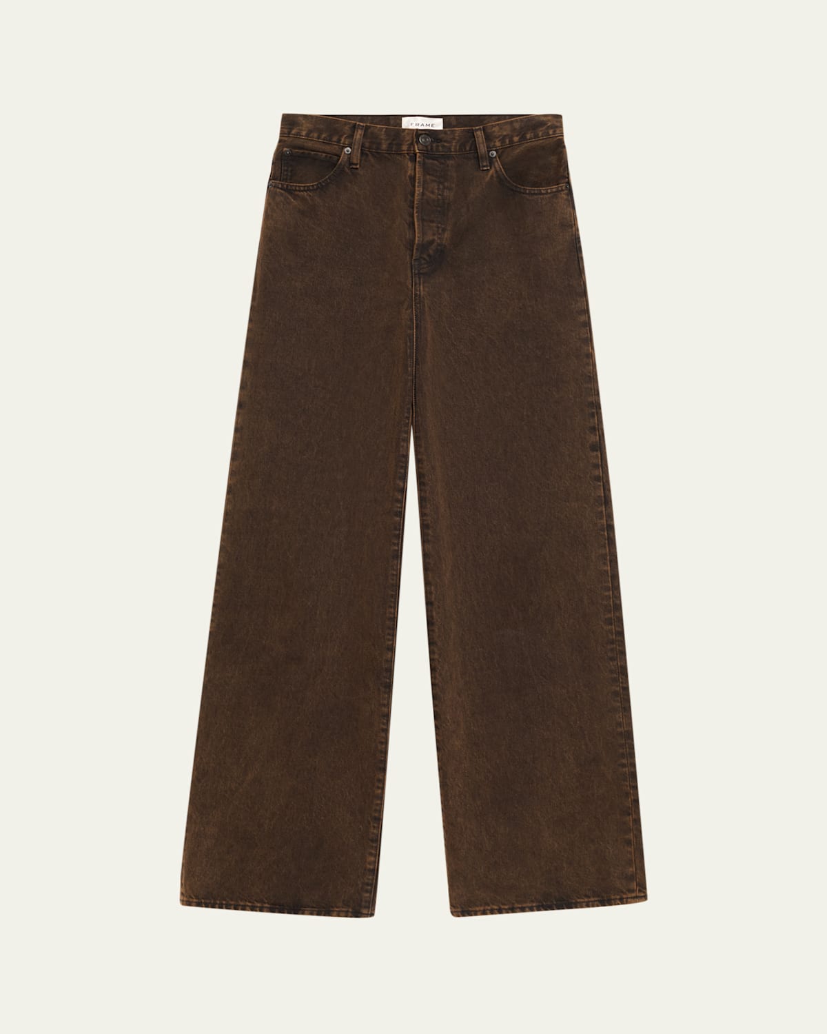 FRAME "The Collegiate" wideleg jeans in brown regenerative denim Approx. 12.5" rise; 32" inseam High rise Fivepocket style Relaxed, baggy fit Full length Button/zip fly; belt loops Cotton Machine wash cold Imported