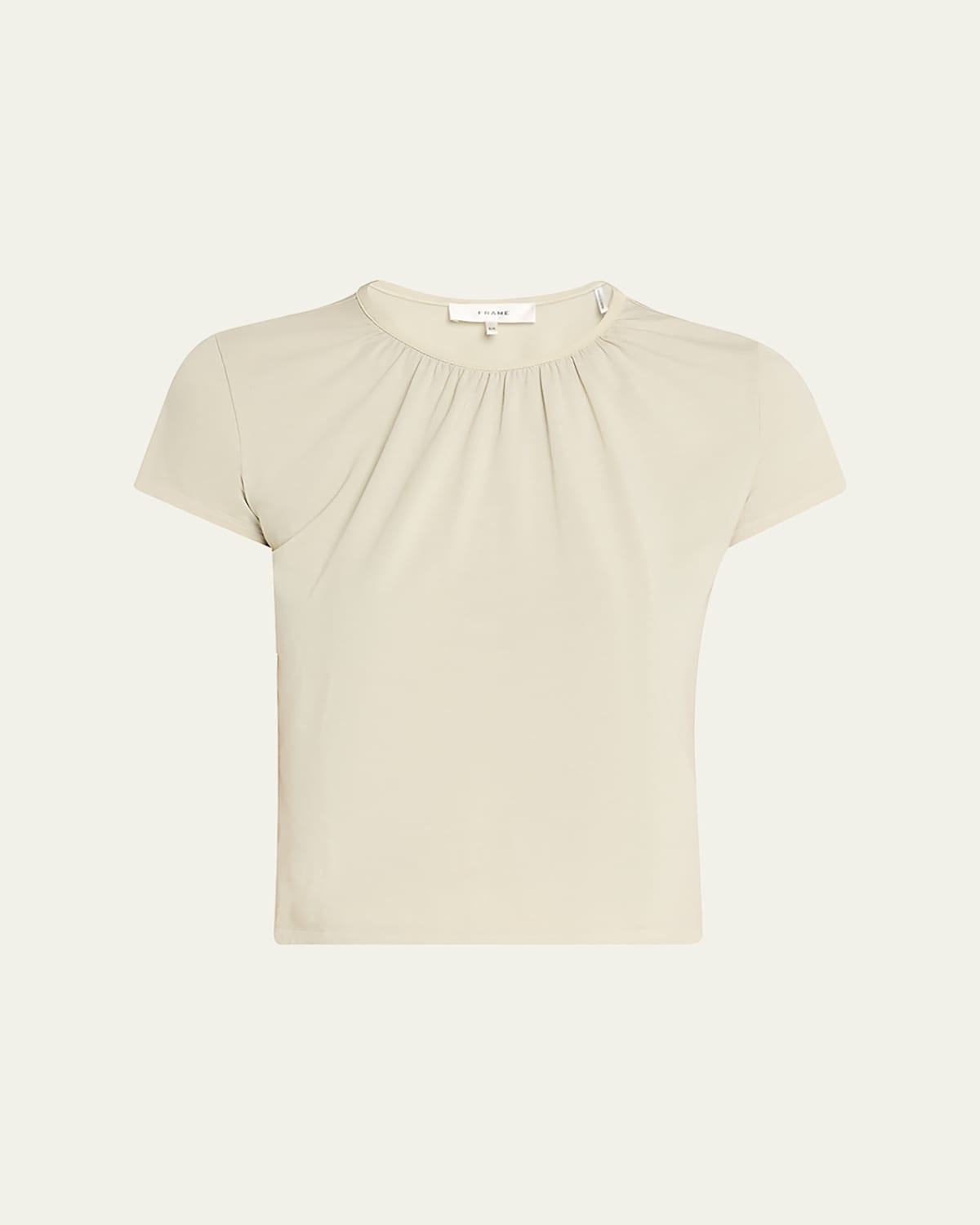 FRAME classic cotton tee with gathering Crew neckline Short sleeves Easy fit Hem sits at the hip Pullover style Cotton/spandex Imported