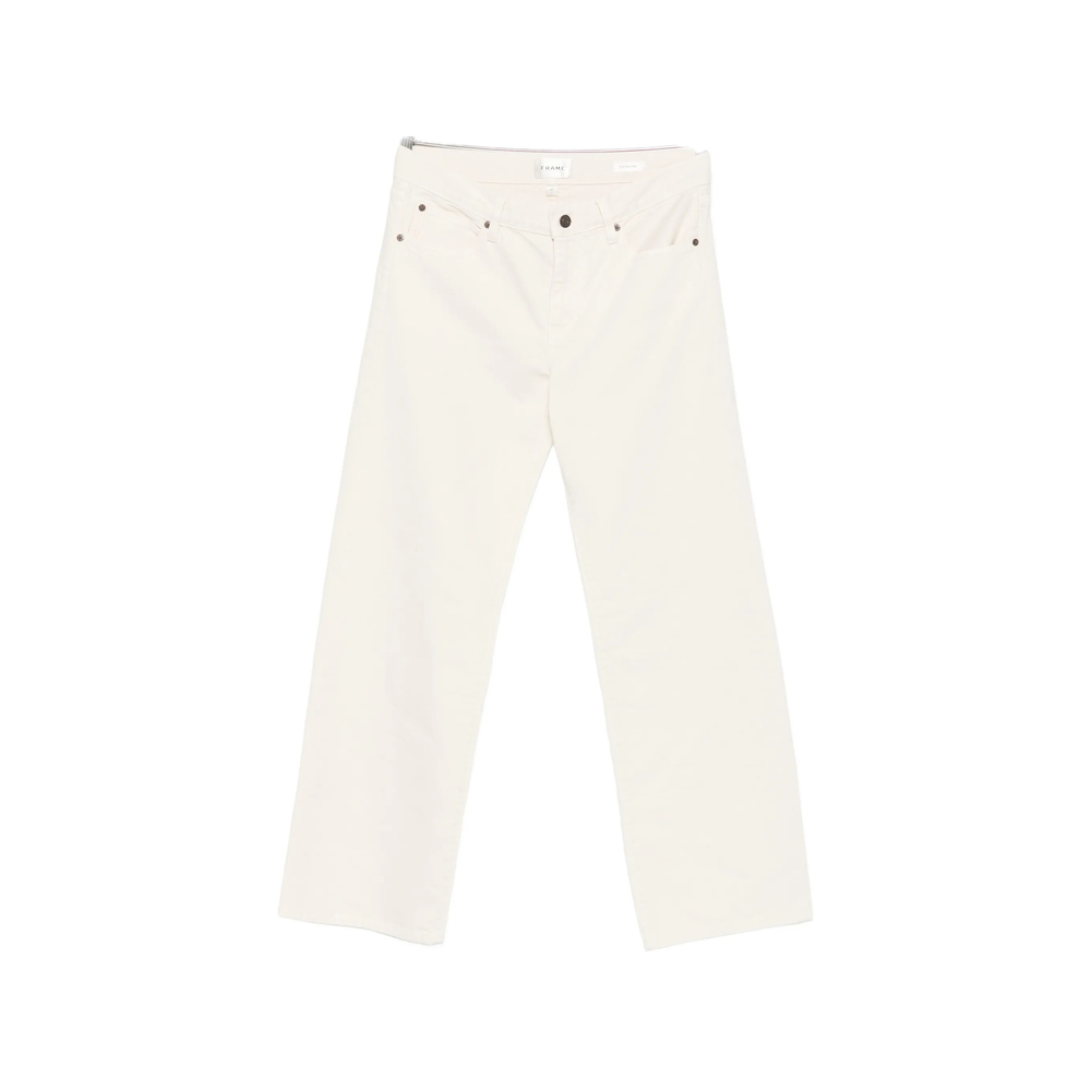 egg white denim wide leg belt loops classic five pockets front button and zip fastening