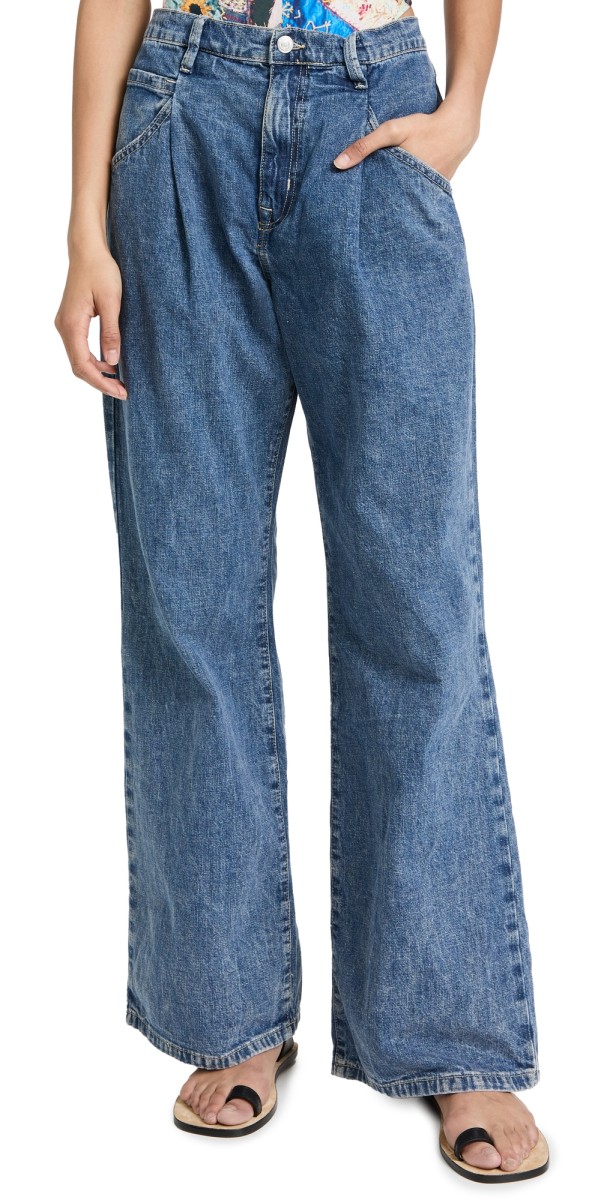 Fabric: Heavyweight, non-stretch denim. Faded wash. Wide-leg cut. Button tabs at waist. Full length. Button closure and zip fly. 5-pocket styling. Shell: 100% cotton. Wash cold or dry clean. Imported, Turkey. Measurements: Measurements from size 26 Rise: 11.75in / 30cm Inseam: 32.25in / 82cm Leg opening: 14.25in / 36cm