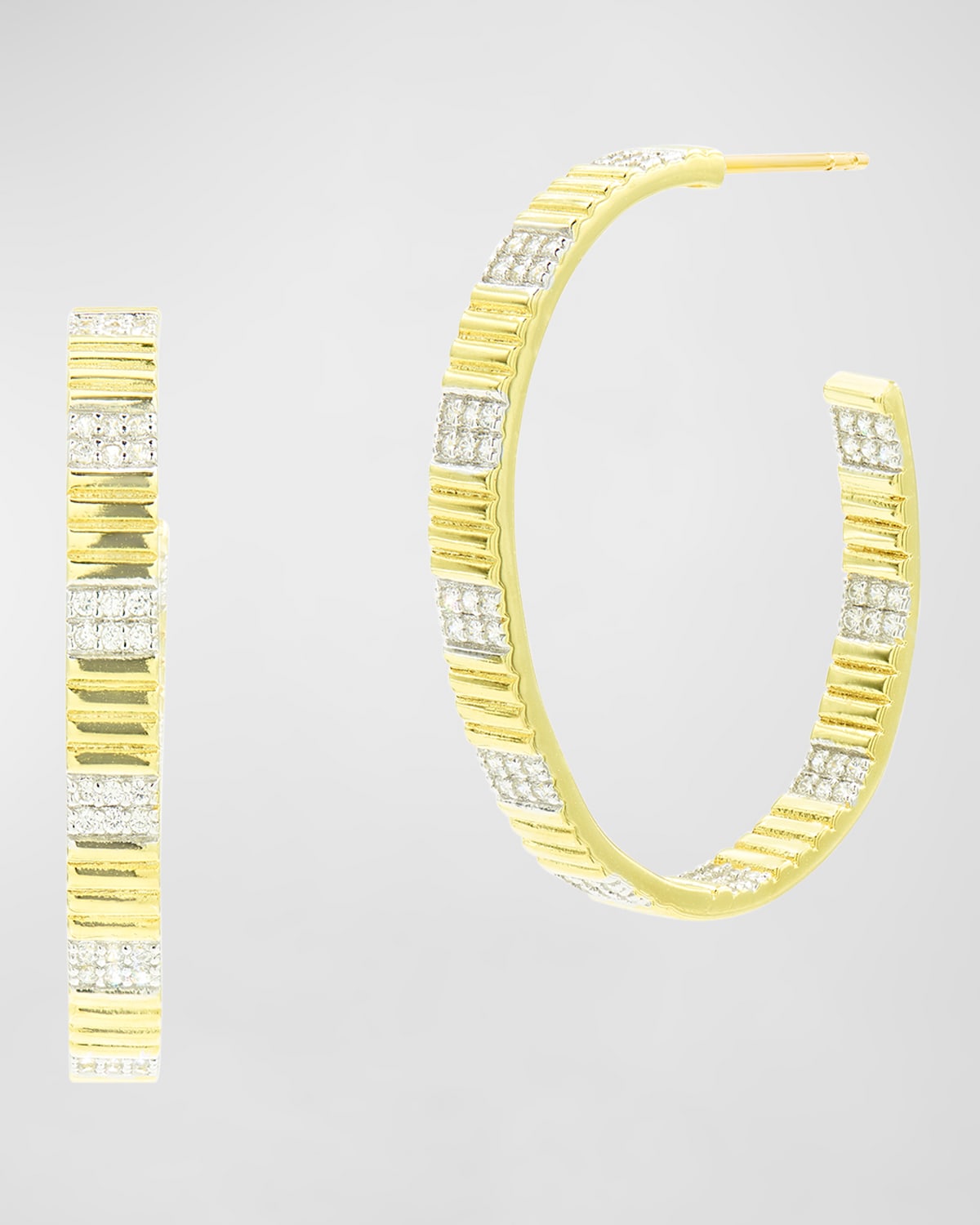 Freida Rothman earrings 14karat gold vermeil over sterling silver Alternating stations with cubic zirconia Hand wash, professional cleaning recommended For pierced ears Imported