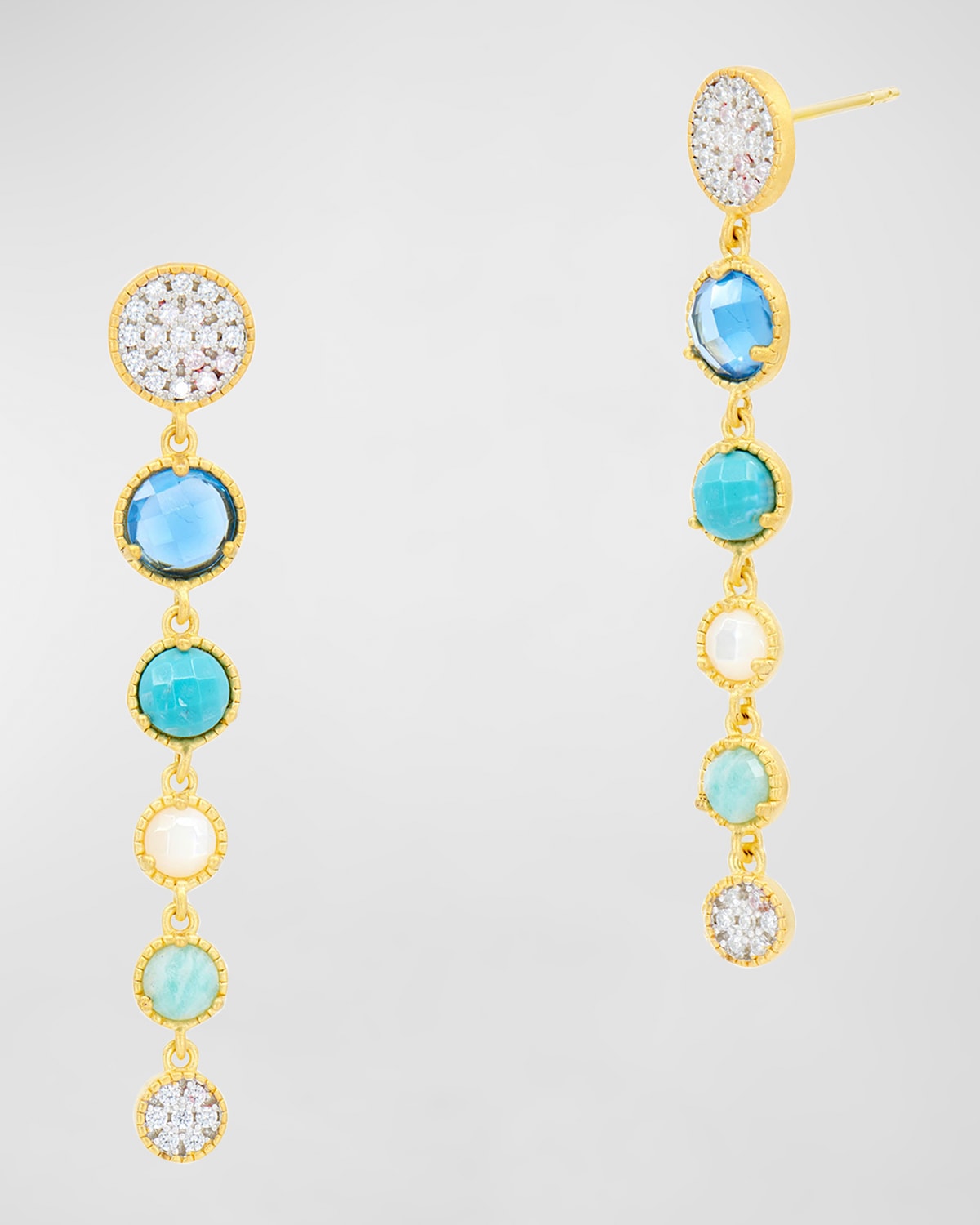 Freida Rothman dangle earrings Approx. 1.96" drop (50mm) Sterling silver with a 14karat gold matte finish Motherofpearl, turquoise, amazonite and aquamarine Hand wash, professional cleaning recommended For pierced ears Imported