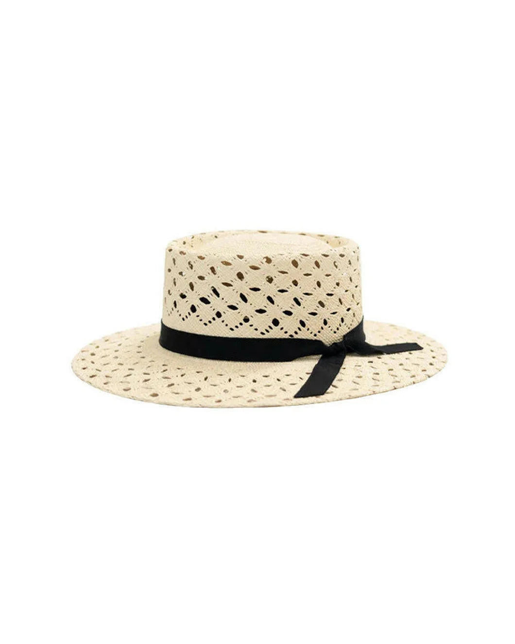 *FINAL SALE* The Daisy Hat by Freya is a classic bolero hat crafted in woven straw with a vented daisy pattern, finished with black grosgrain ribbon. Each hat is unique and reflects the natural beauty & variation of the handicraft process 8cm brim UPF 50 Made in Ecuador Small/Medium (55 cm - 57 cm)
