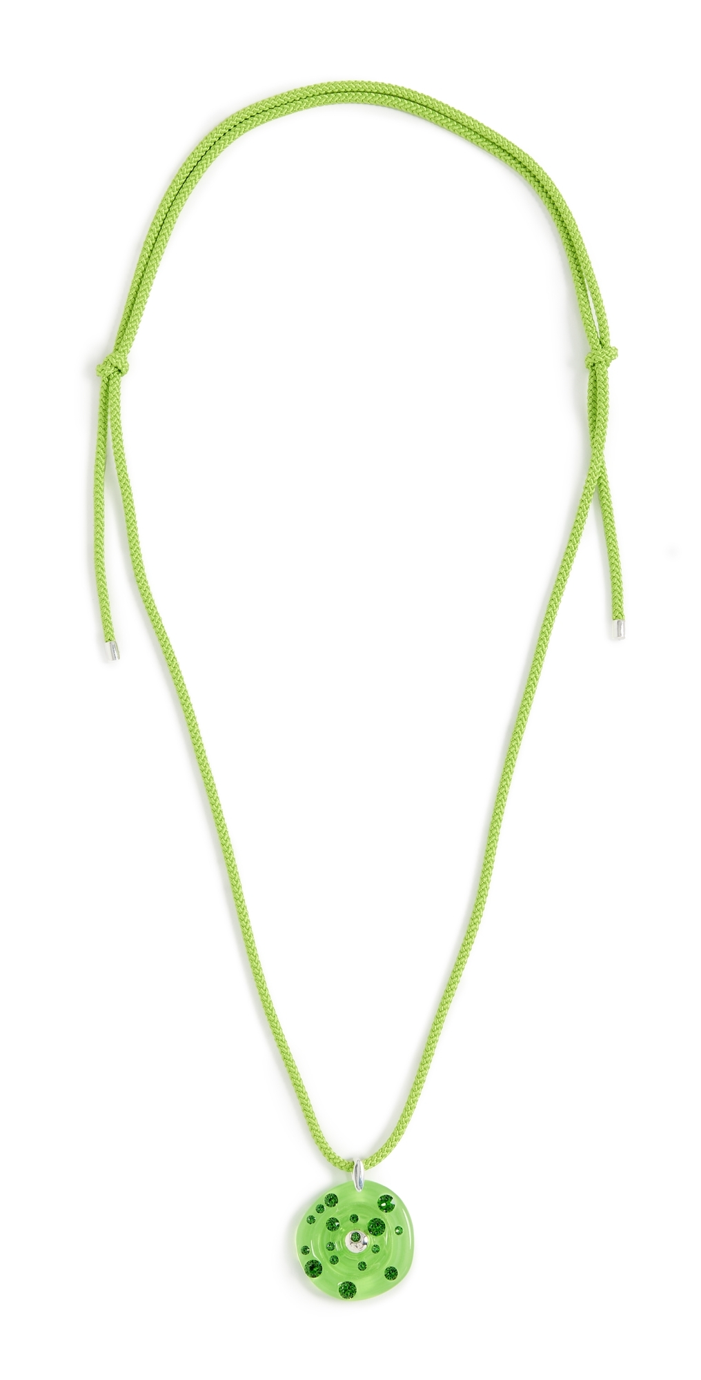 Resin pendant with rhinestone embellishments. Sterling silver. Lariat. Imported, China.