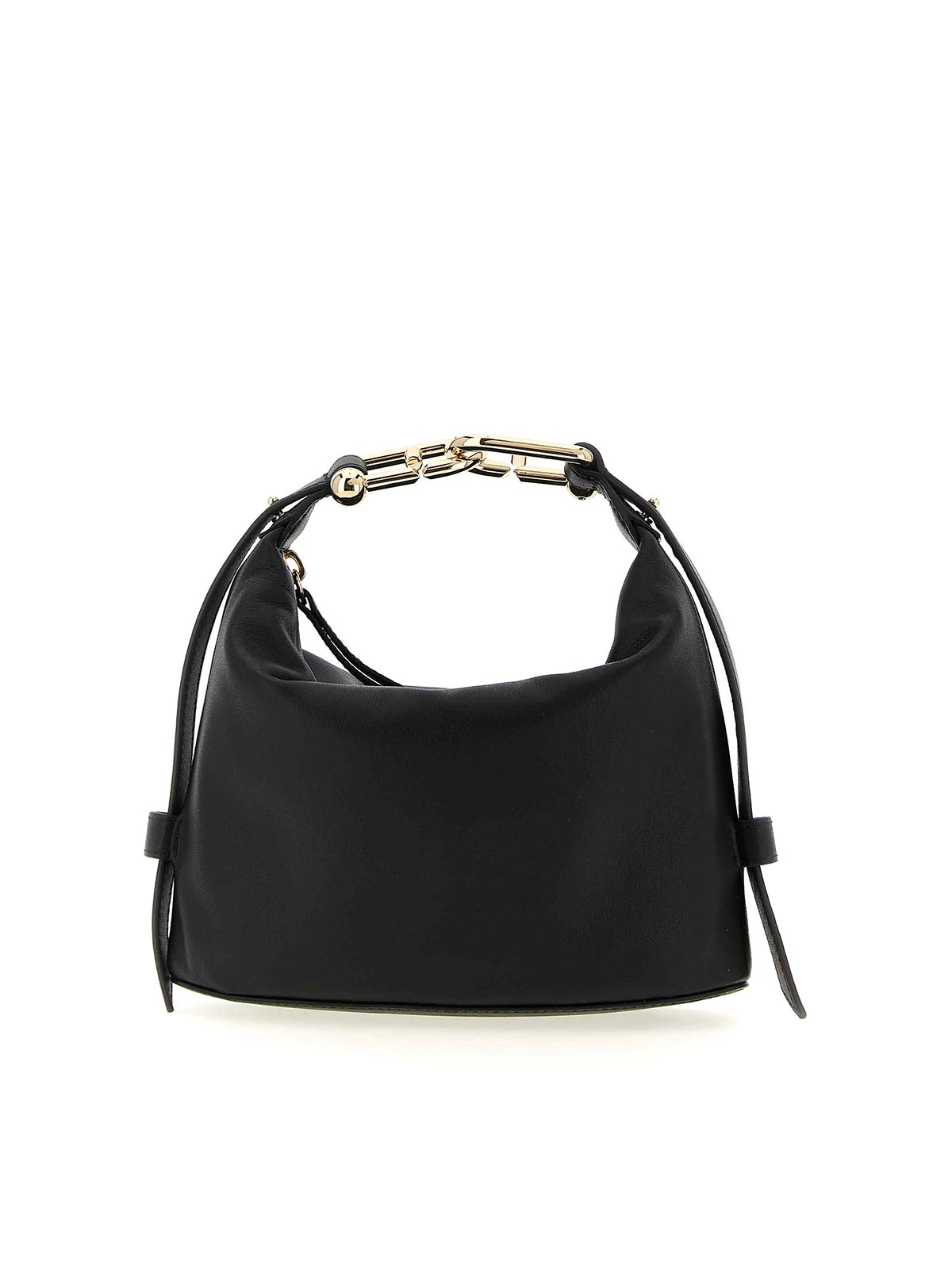 mini-sac à main furla nuvola en cuir grainé, poignée composée de deux éléments en arcosfera entrelacés qui combinent le logo emblématique d'Arco Furla, fermeture zippée sur le dessus, logo embossé sur le devant, possibilité d'ajouter une bandoulière à la poignée.