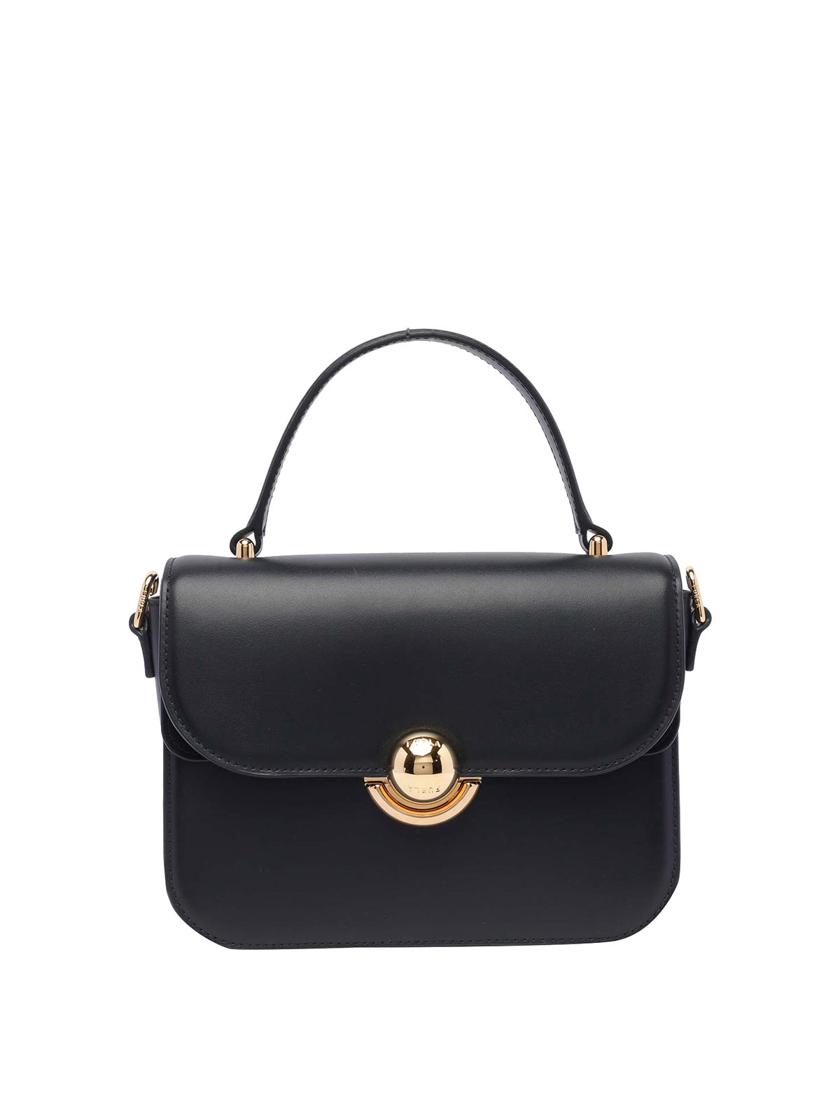 Sac à main Furla Mini Sfera noir avec fermeture à pression, poche zippée, poche ouverte, bandoulière adaptable et amovible