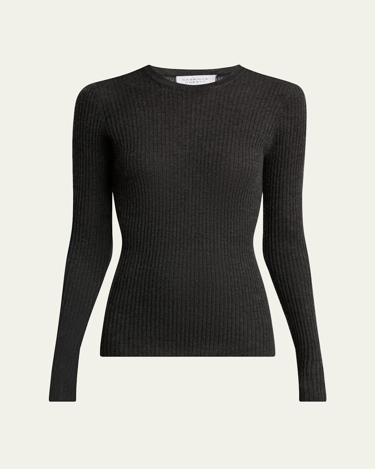 Gabriela Hearst "Browning" sweater in a soft cashmereblend ribbed knit Crew neckline Long sleeves Fitted Pullover style Cashmere/silk Imported