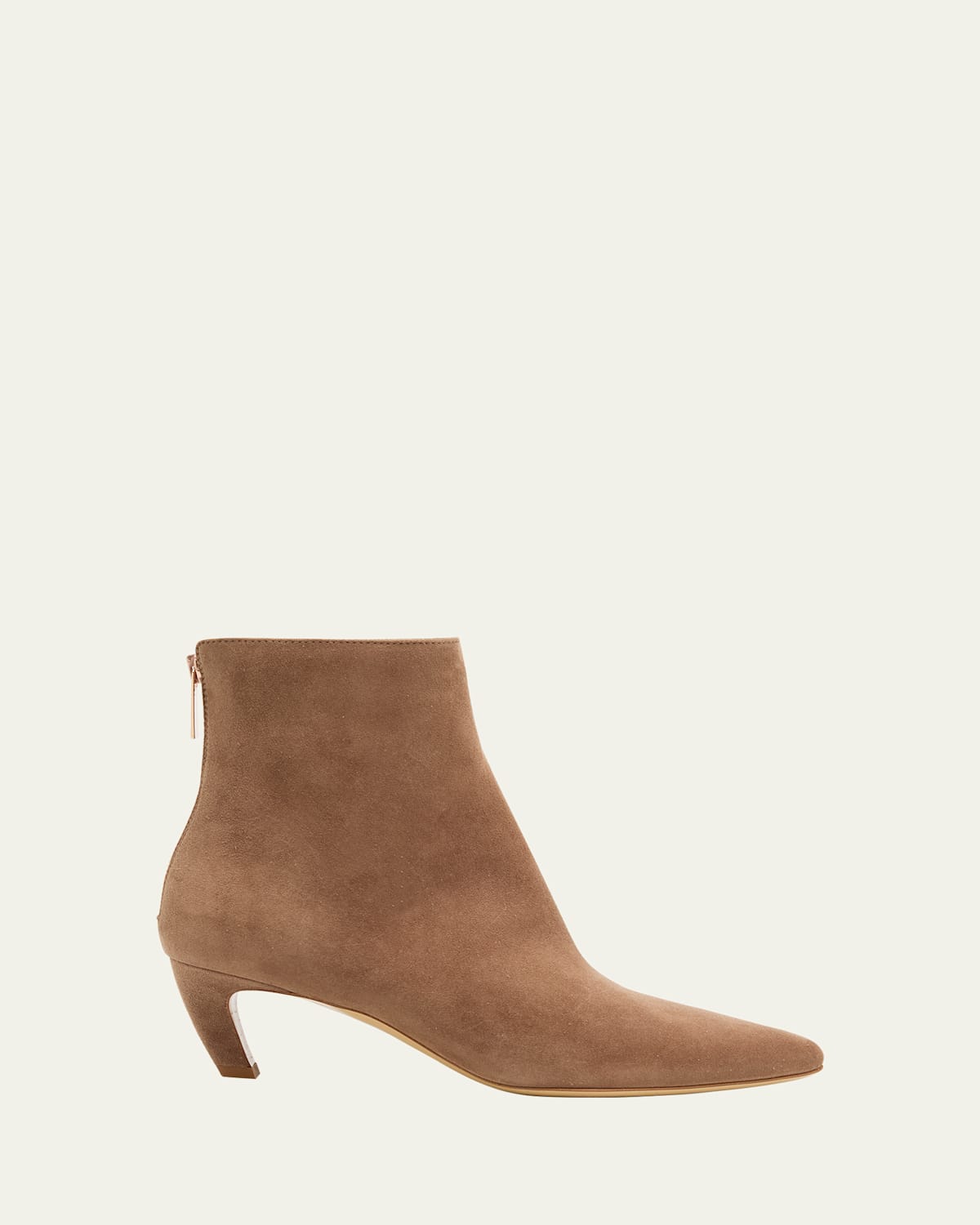 The "Clayton" ankle boots by Gabriela Hearst are crafted from the highest quality goat suede 2.00 in / 50 mm curved kitten heel Pointed toe Back zipper for easy on/off Leather lining and outsole Made in Italy