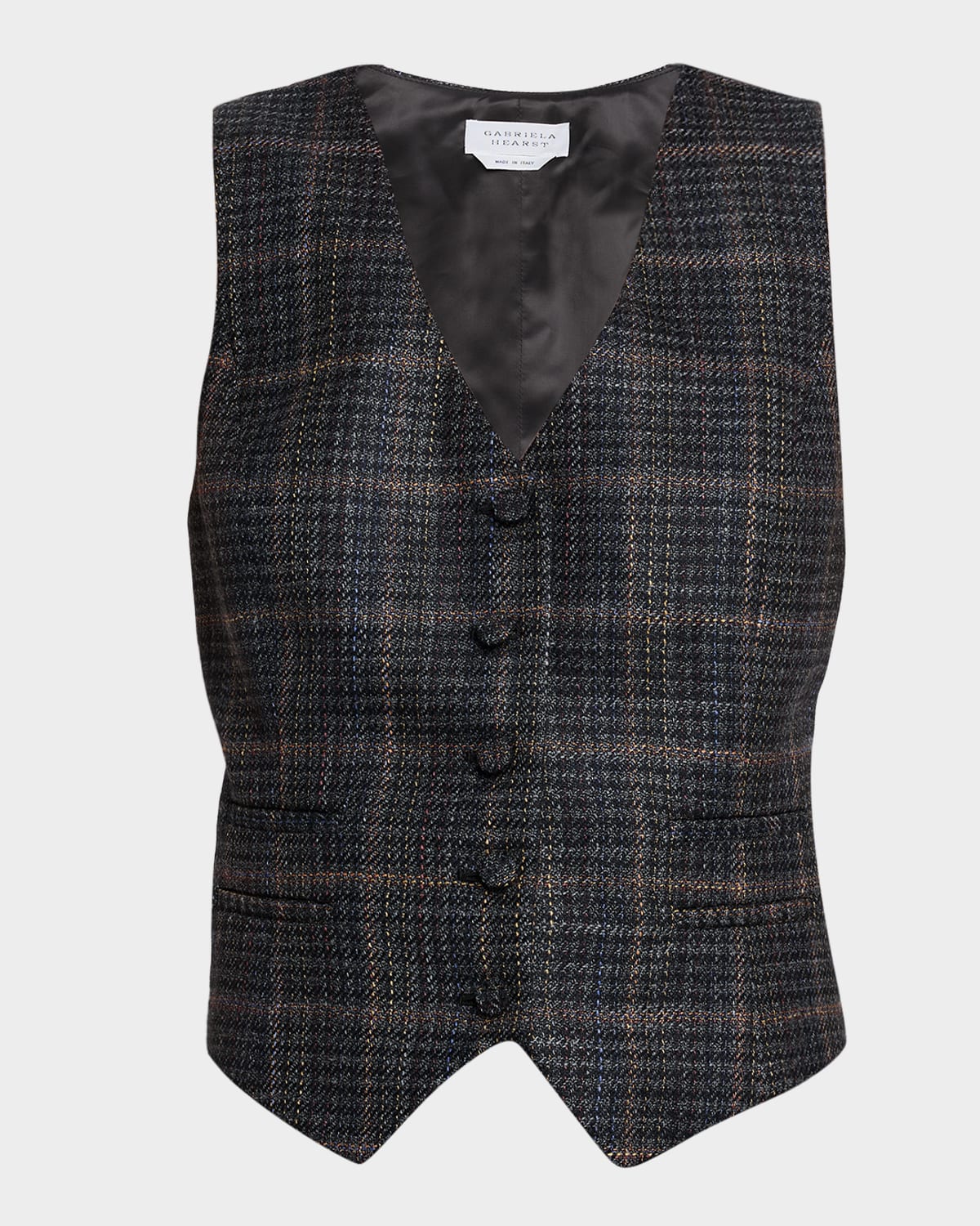 Gabriela Hearst introduces the "Coleridge" vest, expertly crafted from a woven woolsilk blend. The buttons of the vest are selfcovered to create a uniform look. Sleeveless Button front Welt pockets Adjustable buckle on the back Wool/silk Made in Italy