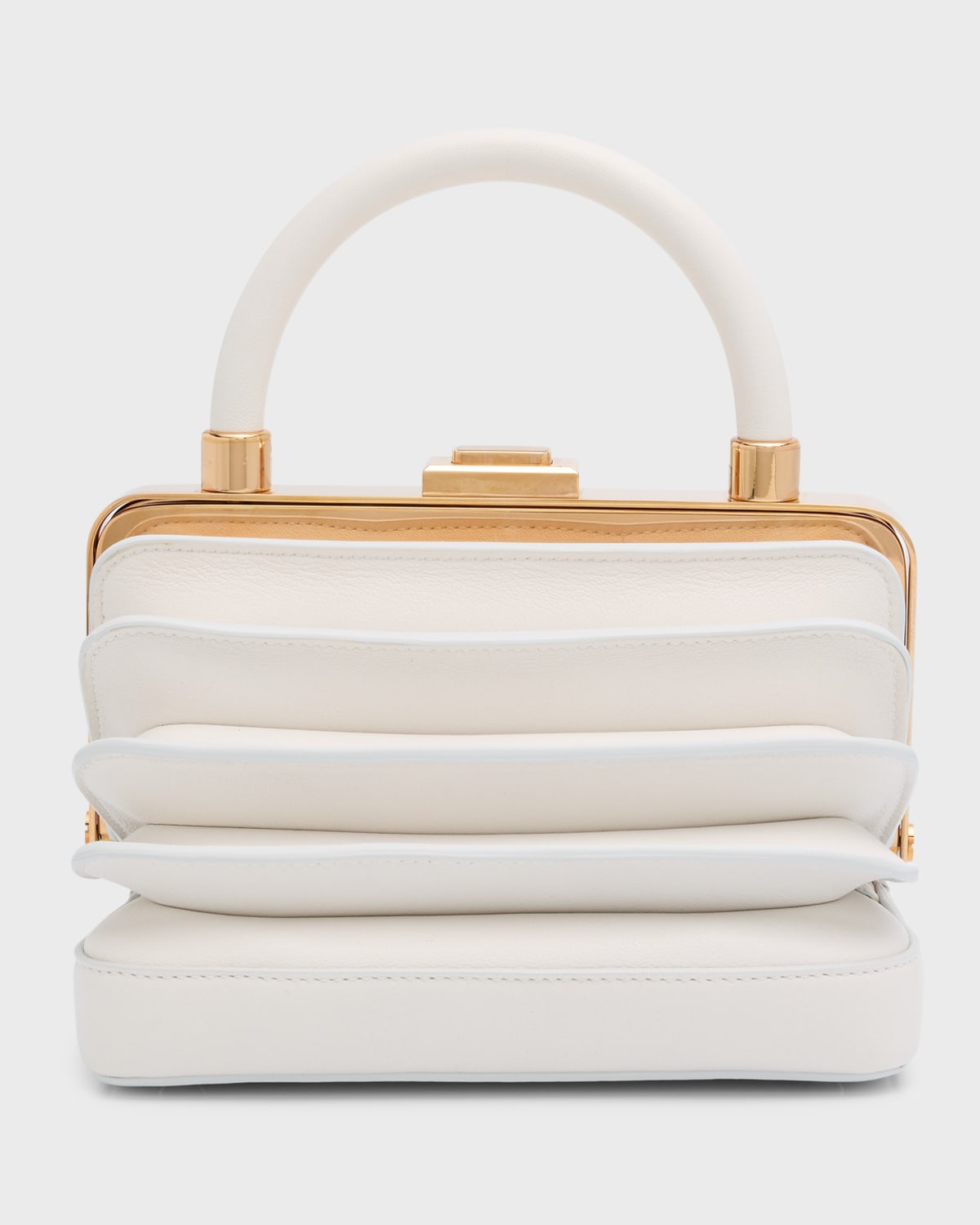 Gabriela Hearst "Diana" napa leather accordion satchel. Top handle. Framed hinge top. Pushlock closure. Made in Italy.