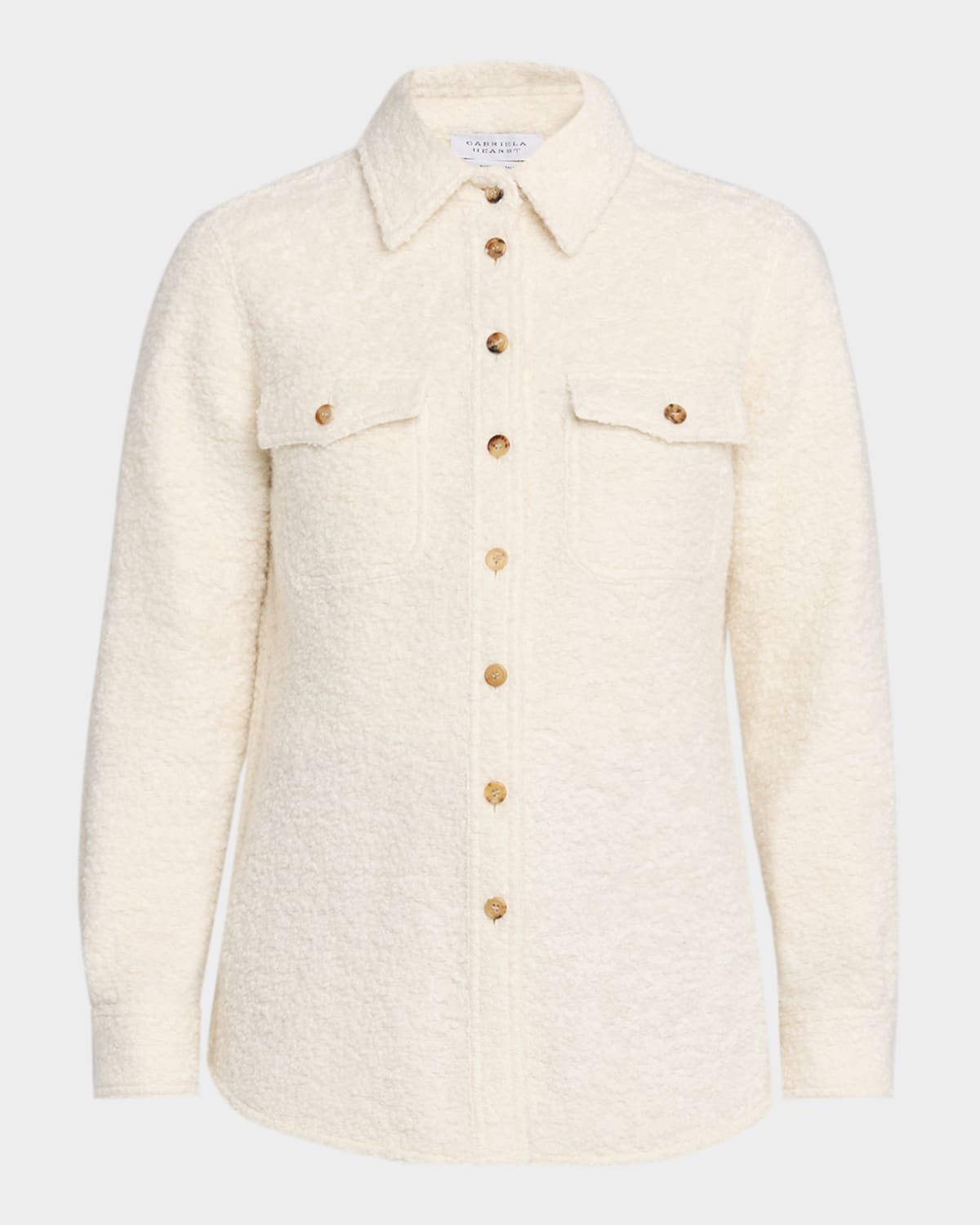 The contrast buttons of the "John Austin" shirt are reminiscent of a utility style. Gabriela Hearst upgrades a typical utility top with a premium blend of wool and cashmere boucle. Pointed collar Long sleeves with button cuffs Button front Two flap pockets Loose fit Wool/cashmere/virgin wool Made in Italy