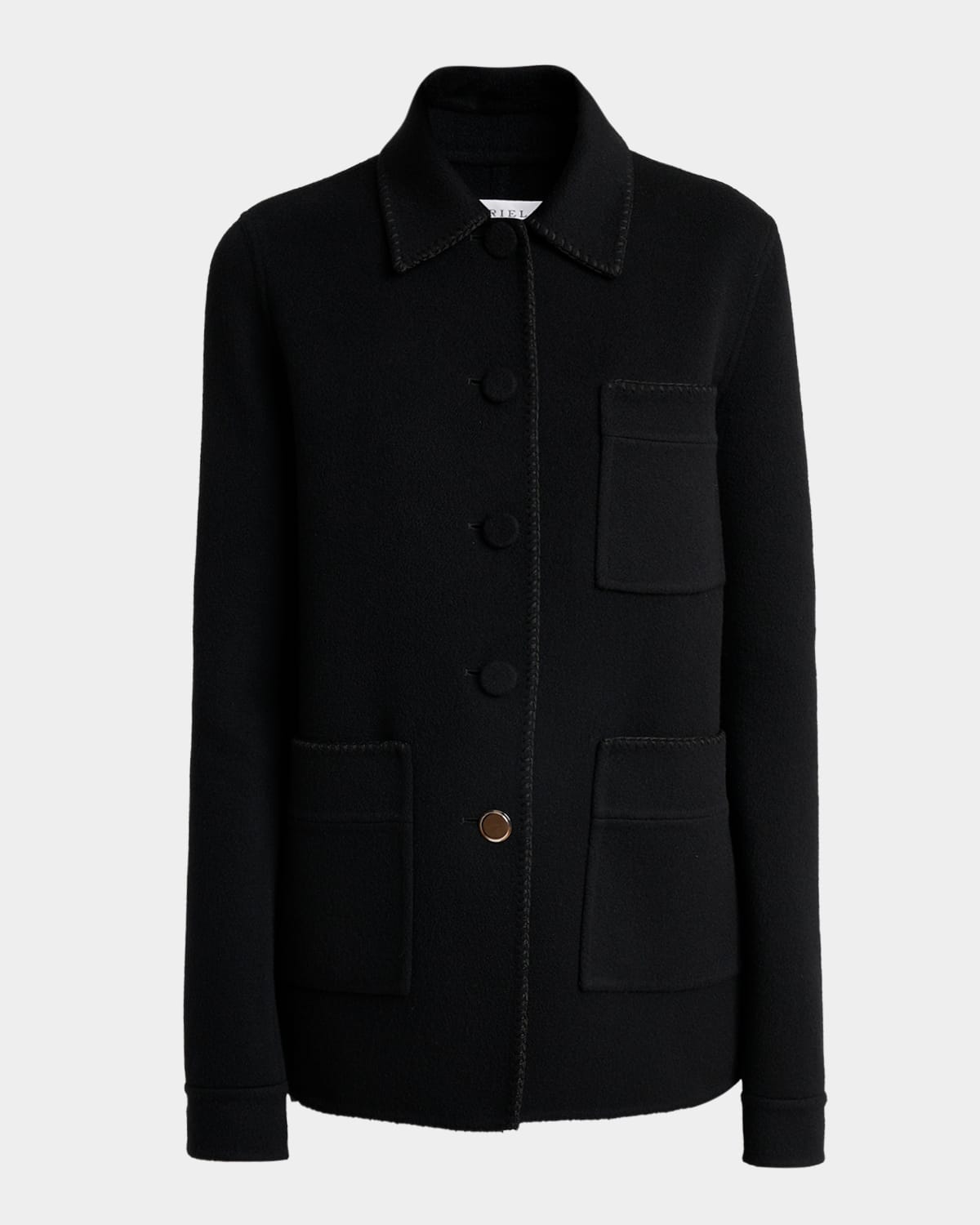 Signature artisanal blanket stitches on the collar, placket, and pocket edges define the "Ulu" chore jacket by Gabriela Hearst, while a rose gold metal button adds a touch of elegant contrast to this minimalist, utilitarian style. Point collar Long sleeves Chest patch pocket Two side patch pockets Slim fit Button front closure Cashmere Made in Italy