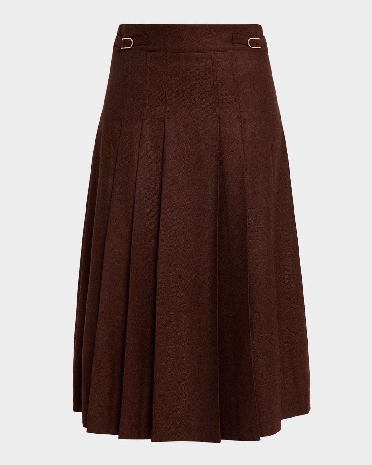Gabriela Hearst ties into a mature and timeless look with the "Wesley" skirt. The decorative buckles and soft blend of virgin wool and cashmere define the pleated piece. Aline silhouette Concealed zip closure Hem falls below the knee Virgin wool/cashmere Made in Italy