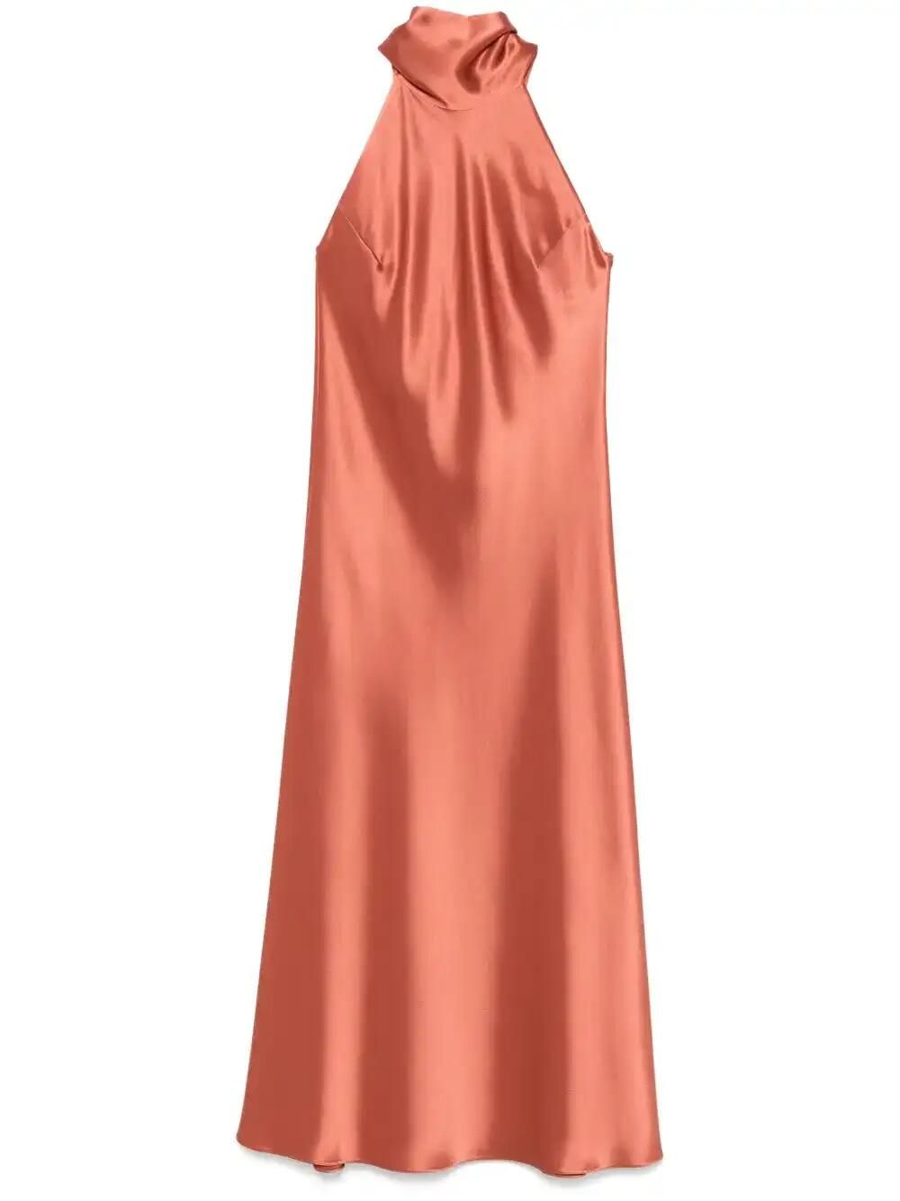 cinnamon rear button fastening halterneck attached scarf sleeveless