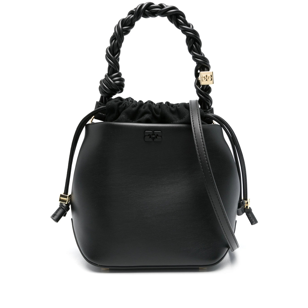 black tie-fastening straps braided top handles adjustable detachable shoulder strap This piece comes complete with a protective dust bag.