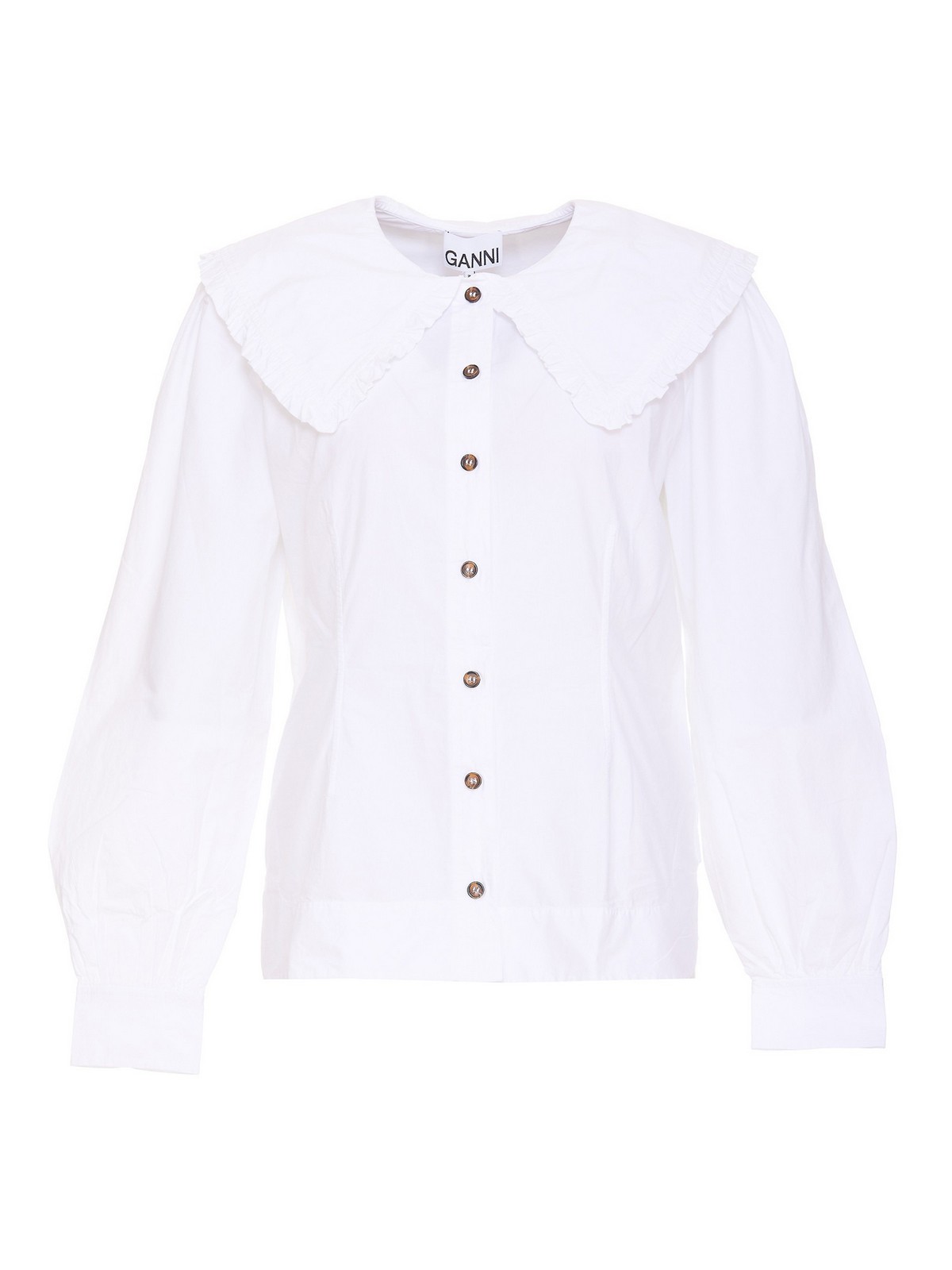 Chemise, fermeture boutonnée sur le devant, col ganni classique, détail boutonné sur les poignets