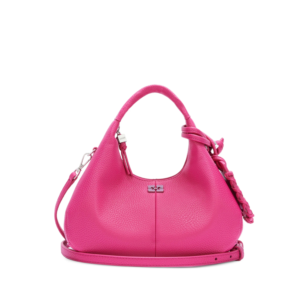 bright pink top handle detachable shoulder strap silver-tone hardware zip fastening