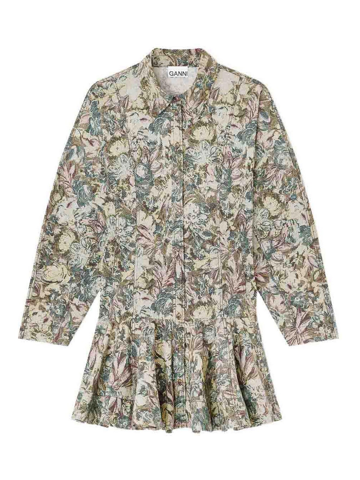 Corsage ajusté à manches longues et ourlet plissé vert à imprimé floral