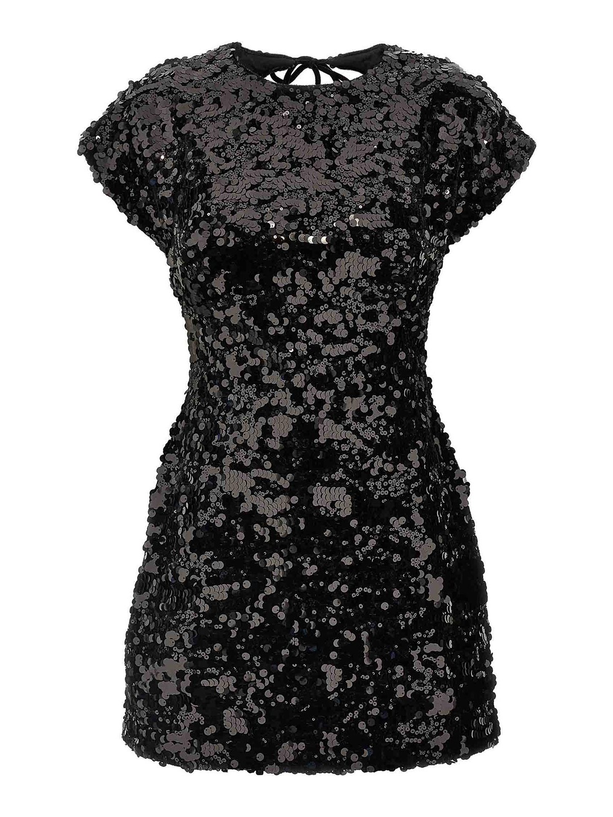 mini-robe à effet de sequins en velours, entièrement recouverte de sequins, col rond, manches courtes, encolure large dans le dos avec bandes ajustables.
