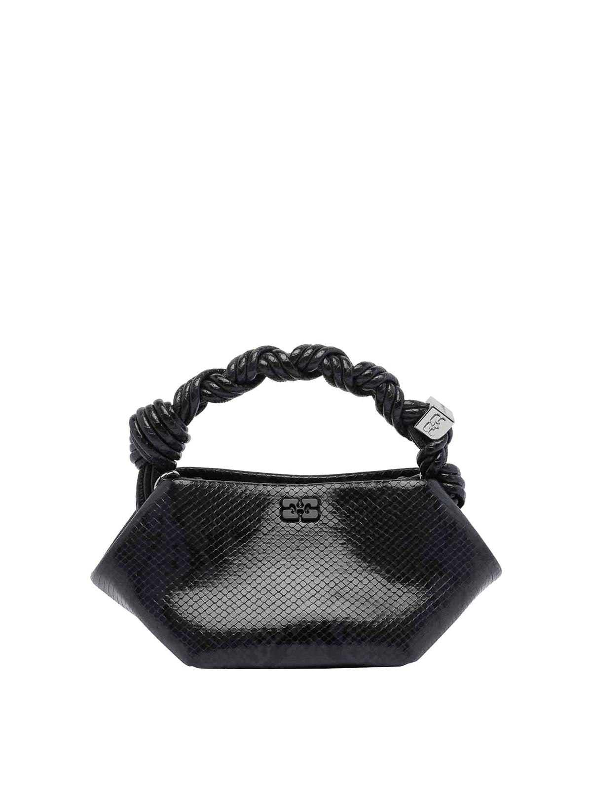 Sac à main Ganni Black Mini Ganni Bou Snake à fente magnétique, bandoulière adaptable et amovible, modèle serpent, nom de la couleur du créateur: noir