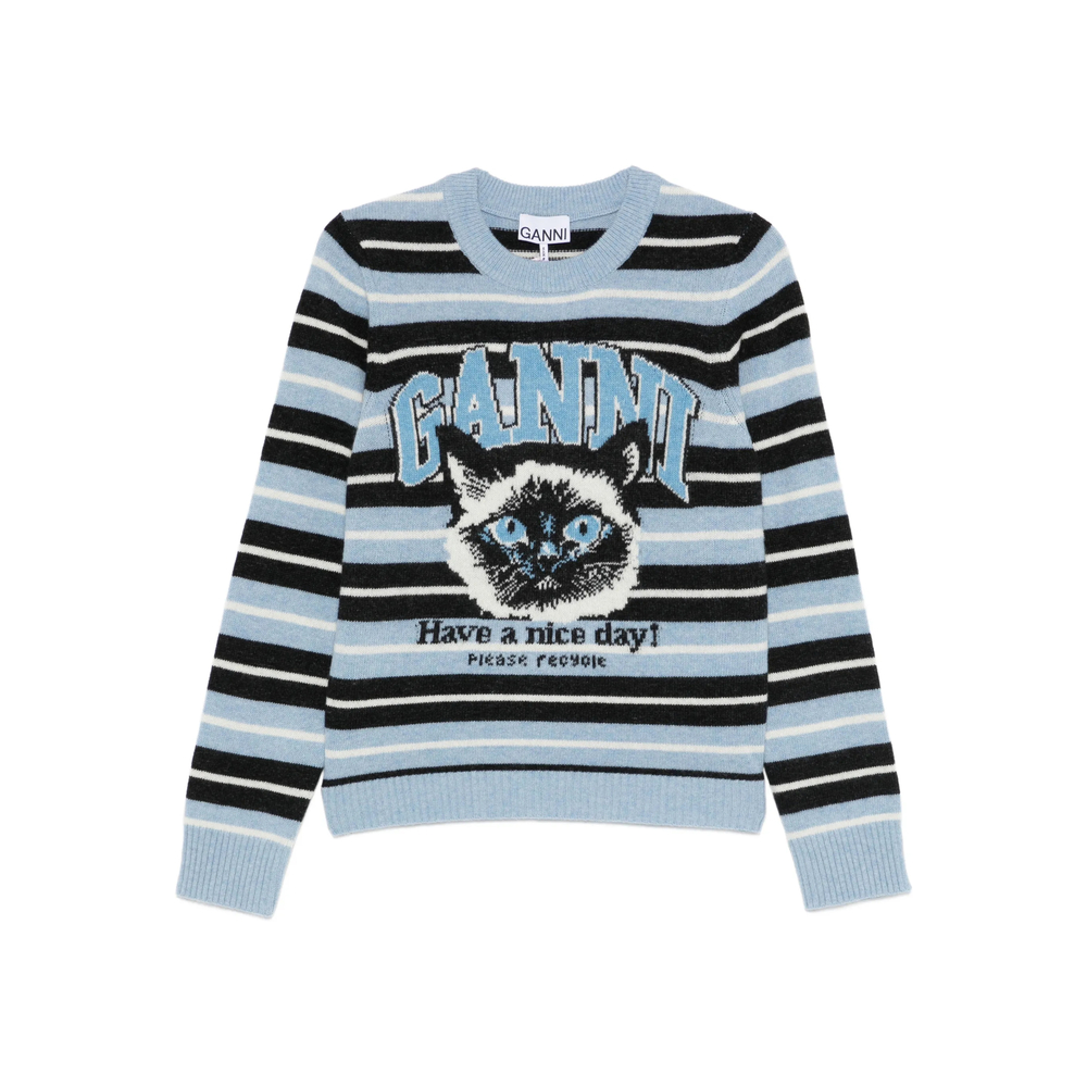 blue stripe pattern patterned jacquard round neck long sleeves ribbed hem