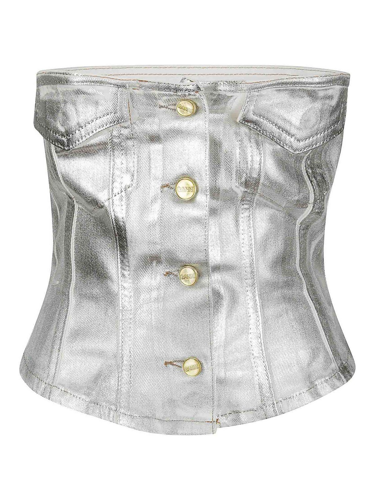 Corset en jean à effet gaufré sur le devant avec boutons et deux poches