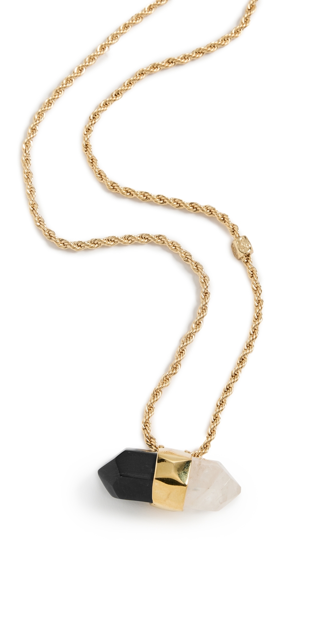 Crystal and onyx accents. Twisted cord. Gold plate. Made in France. Measurements: Length: 17.75-19.25in / 45.0-49.0cm