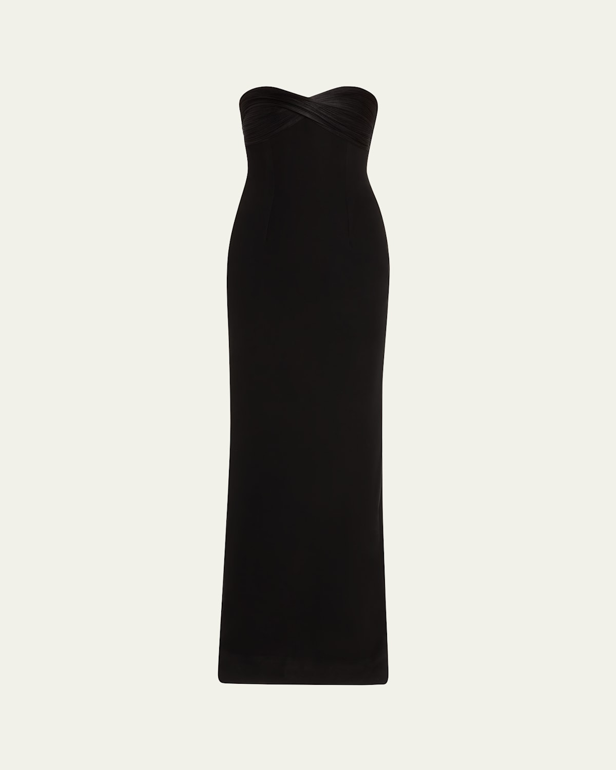 Gaurav Gupta "Infinity" column gown featuring pleated draping along the bust Approx. 63"L from shoulder to hem Strapless sweetheart neckline Sleeveless Column silhouette Floor length Centerback slit hem Invisible back zip Polyester Dry clean Imported