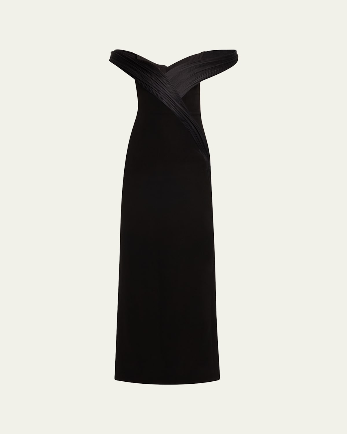 Sharon Off-The-Shoulder Metallic Silk Plisse Gown
