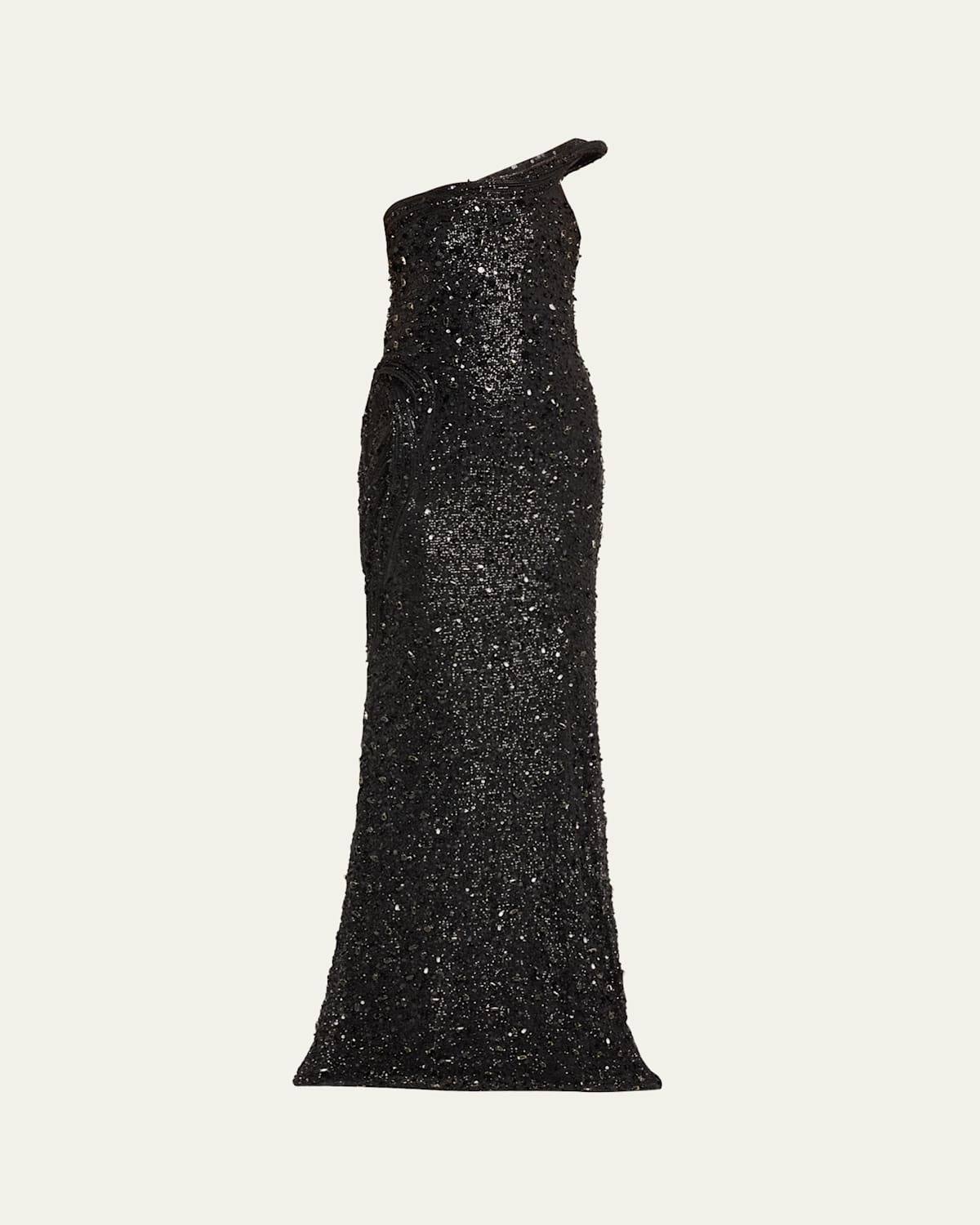 The Celestial One-Shoulder Sequined Crystal Sculpted Gown