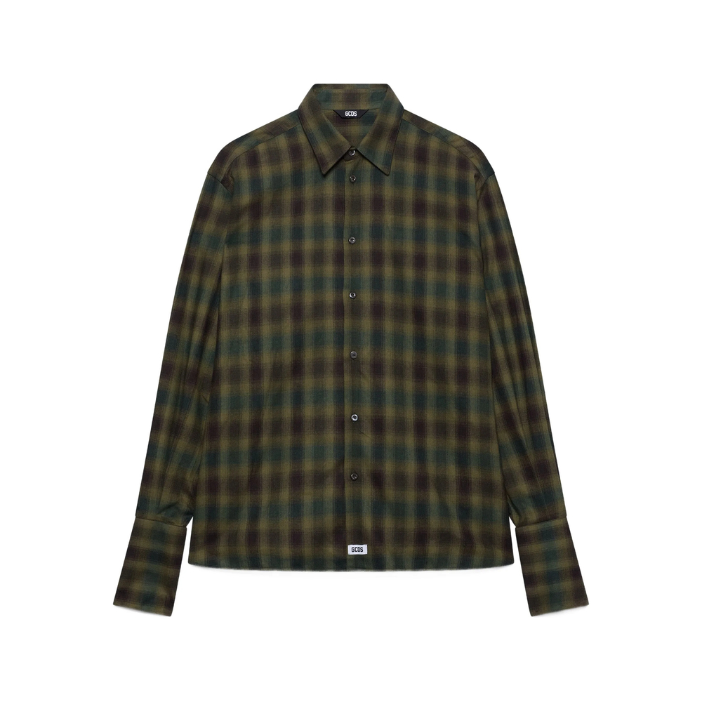 green check pattern button fastening long sleeves buttoned cuffs logo patch
