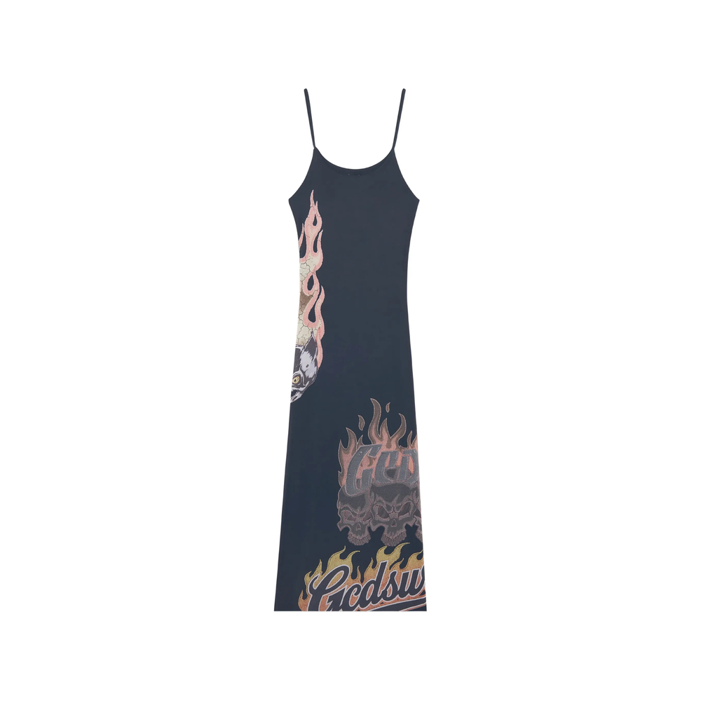 black graphic print thin straps