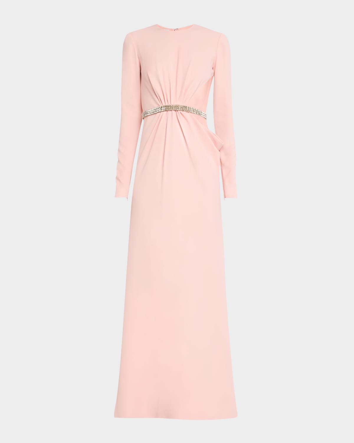 Giambattista Valli gown featuring a gathered waist embellished with a crystal belt and side cutout Approx. 43.31"L from shoulder to hem Round neckline Long sleeves Column silhouette Full length Invisible back zip Viscose/elastane Made in Italy
