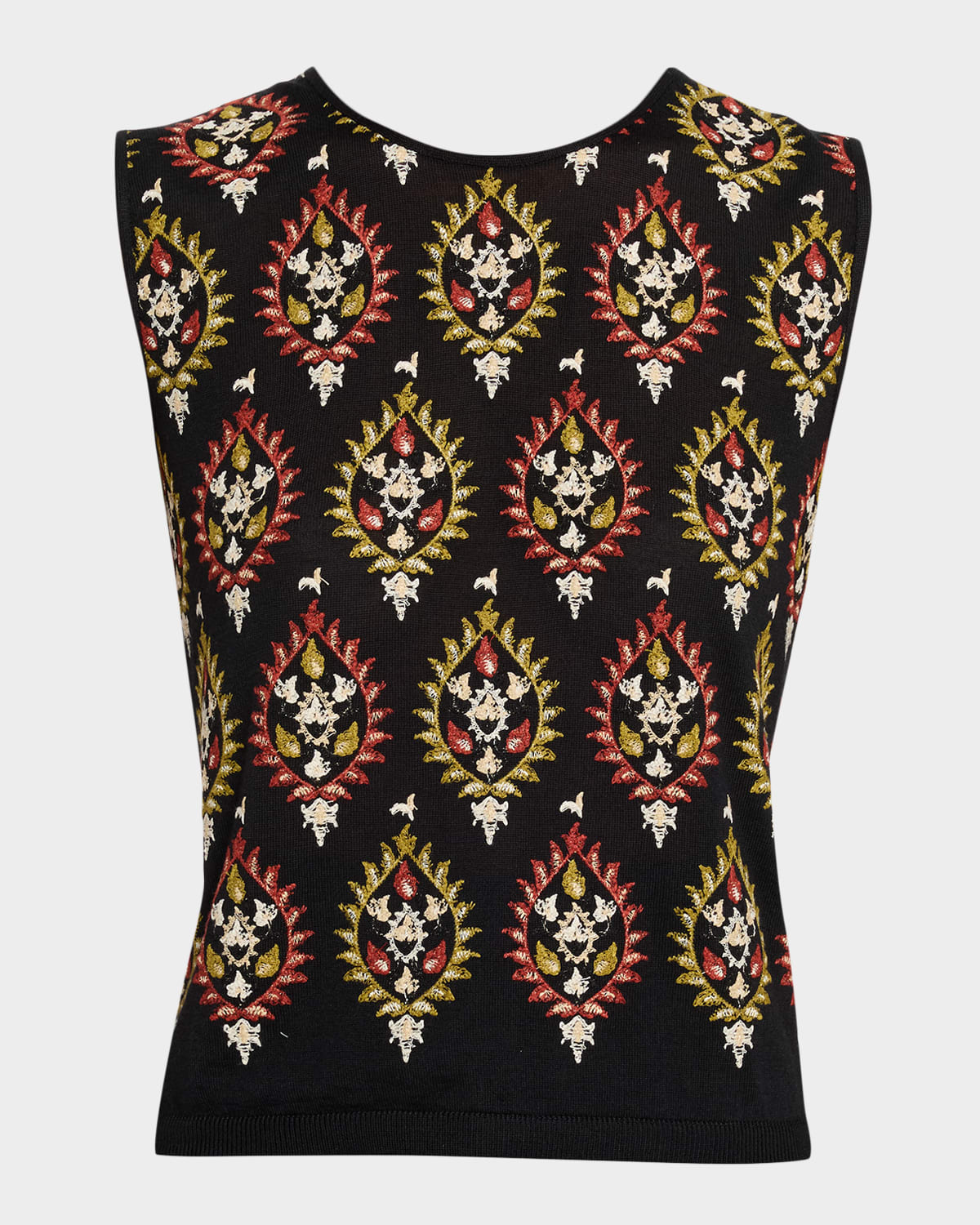 Giambattista Valli vest is crafted of cashmeresilk knit with intricate embroidery Crew neckline Sleeveless Relaxed fit Hip length Ribbed hem Pullover style Cashmere/silk Made in Italy