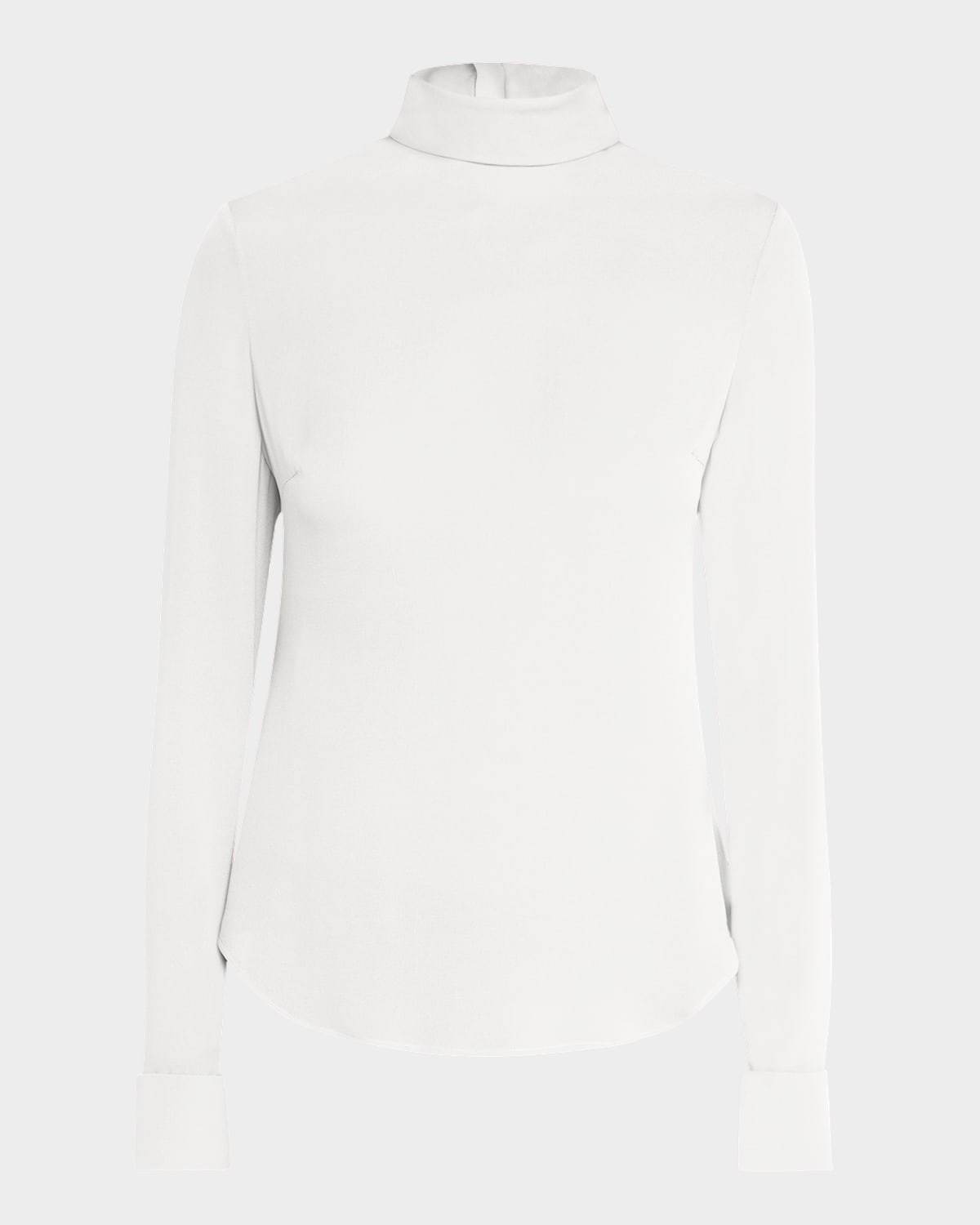 Mock-Neck Long-Sleeve Silk Blouse