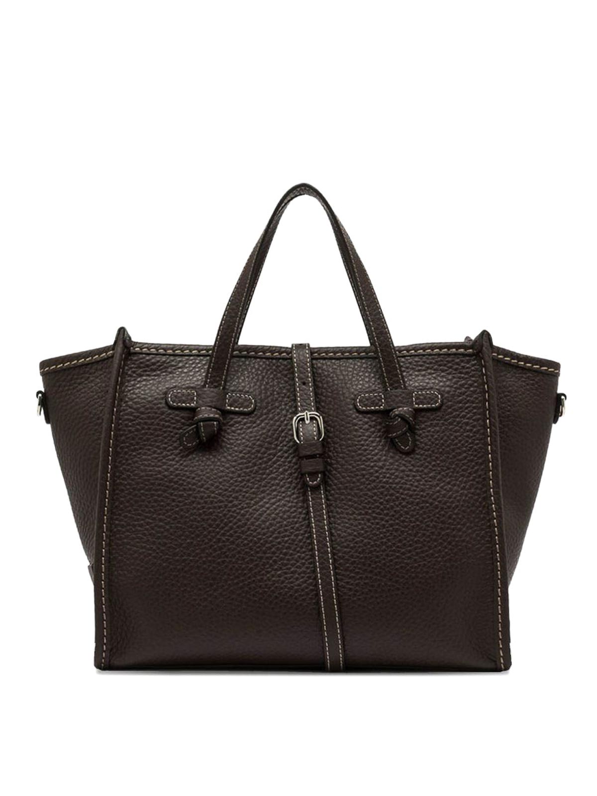 Poignées sur le dessus du bracelet à boucle grainée marron avec surpiqûres
