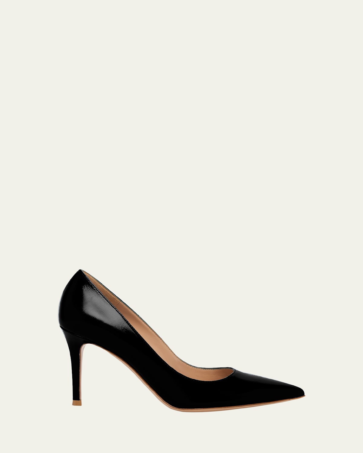 Gianvito Rossi "Nuit" sleek leather pumps 3.25 in / 85 mm stiletto heel Almond toe Slipon style Leather outsole Lining: Leather Made in Italy