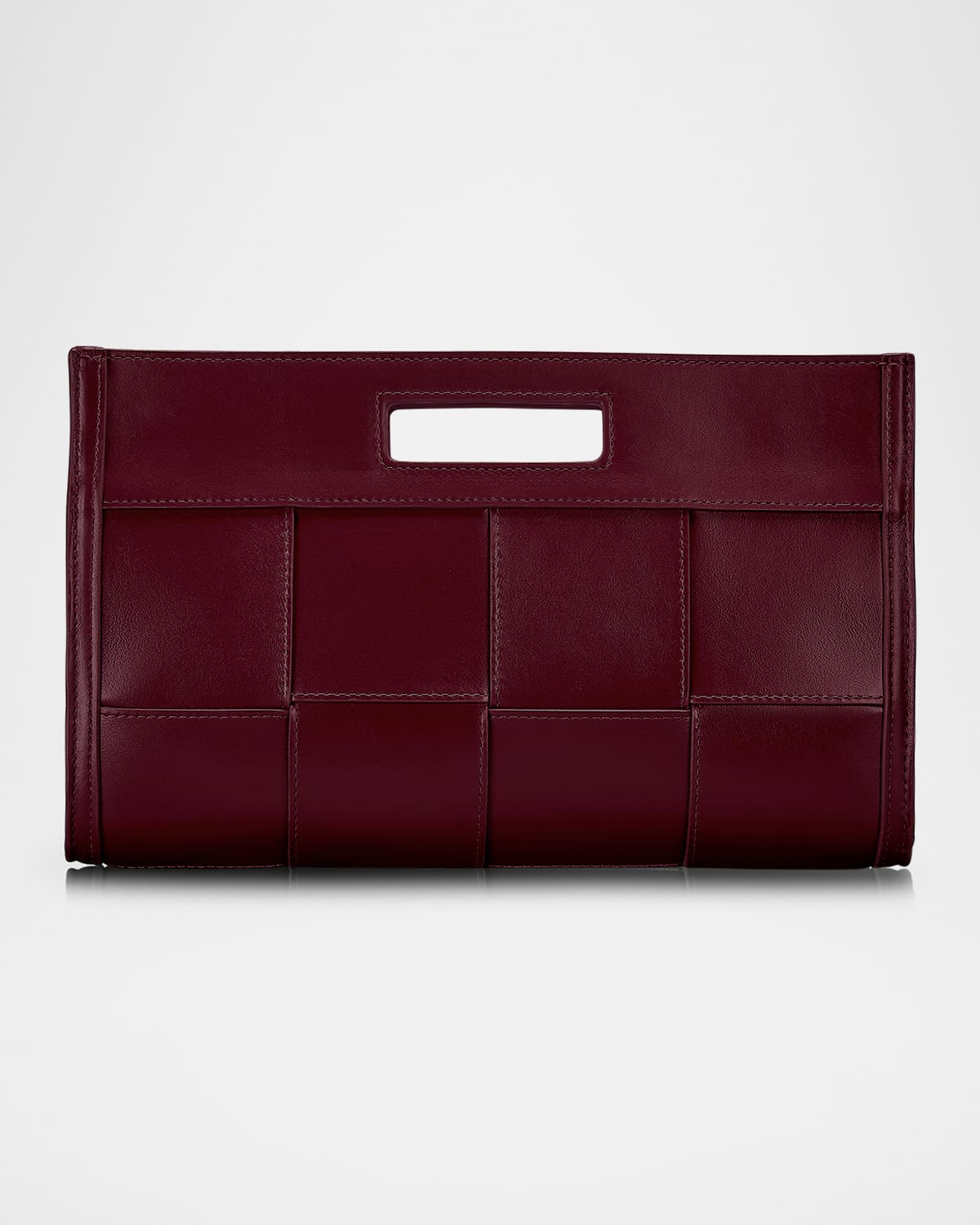 Gigi New York "Remy" clutch bag in woven leather Cutout top handles Can be worn as a clutch or top handle bag Open top with magnetic closure Lining: Faux leather Approx. 8"H x 13"W x 2"D Item Weight (Lbs.): 1.0 Wipe clean Made in USA from imported materials