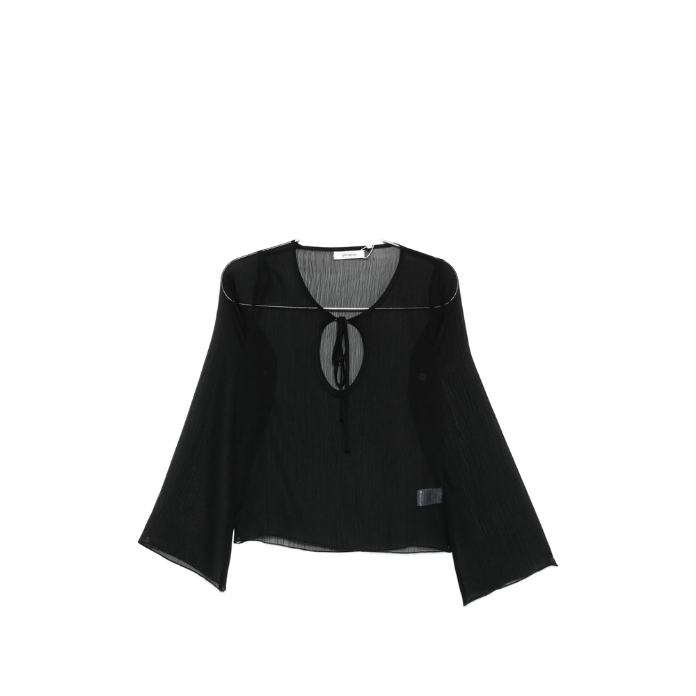 black keyhole neckline front tie fastening long sleeves sheer finish