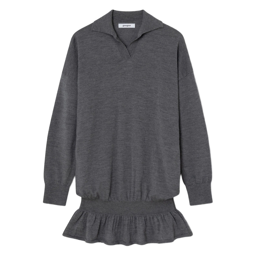 dark grey V-neck long sleeves ribbed cuffs ruffled hem elasticated waistband