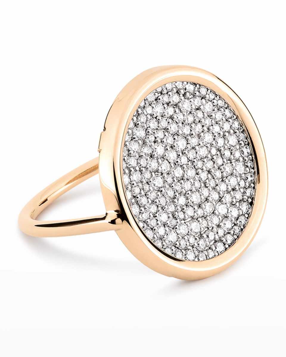 GINETTE NY white diamond disc ring. Polished 18karat rose gold band. 0.844 total diamond carat weight. Imported.
