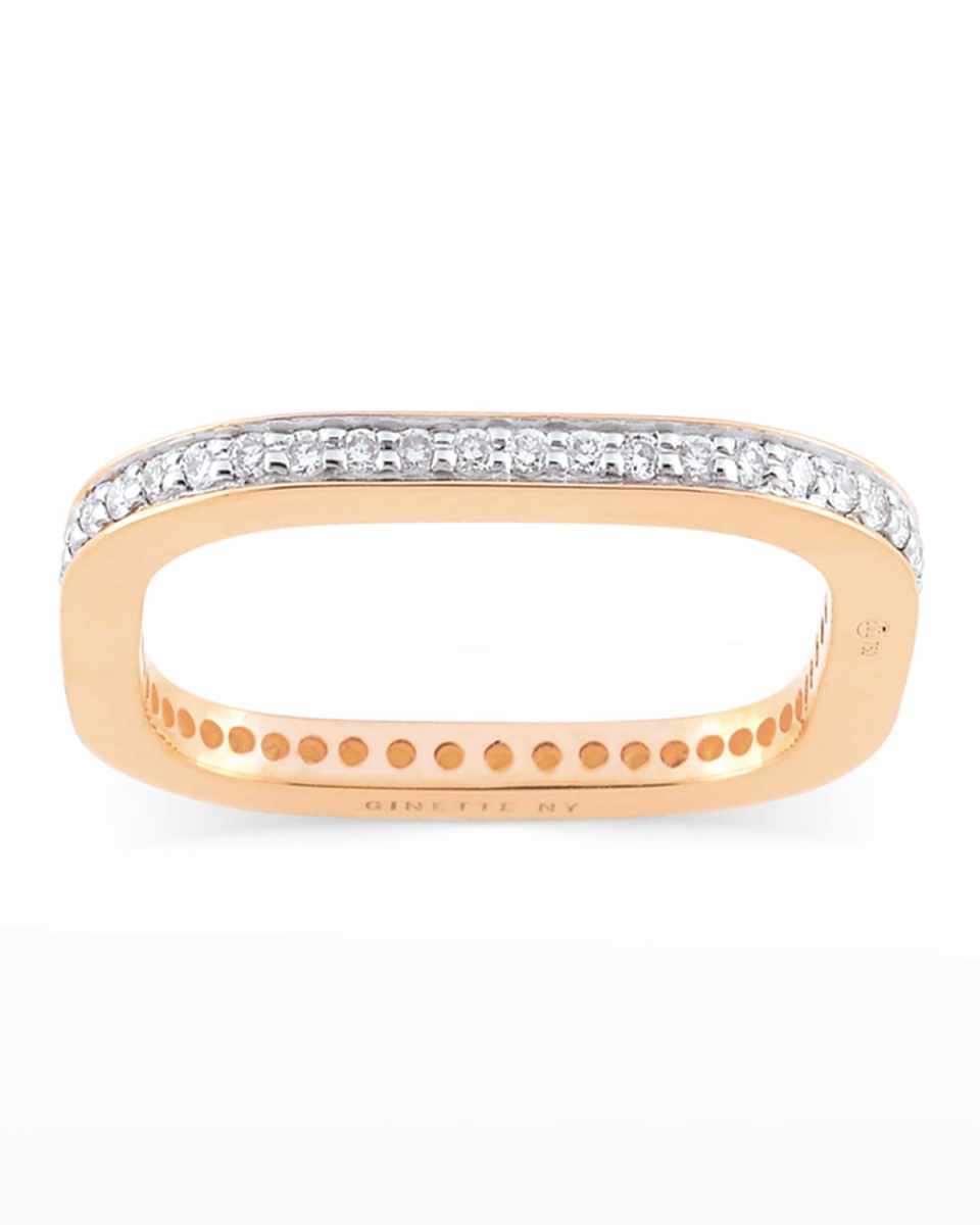 GINETTE NY ring from the TV Collection. Inspired by the shape of a '70s TV screen. Polished 18karat rose gold hardware. White diamond pavé detail at front. 0.378 total diamond carat weight. Imported.