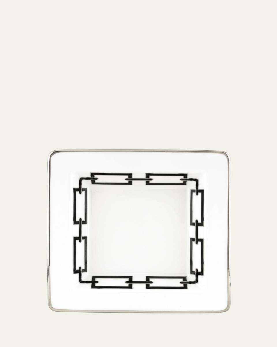 Handcrafted tray made of porcelain with black and platinum decoration Approx. 7"Sq. x 1.3"D Item Weight (Lbs.): 0.6 Made in Italy