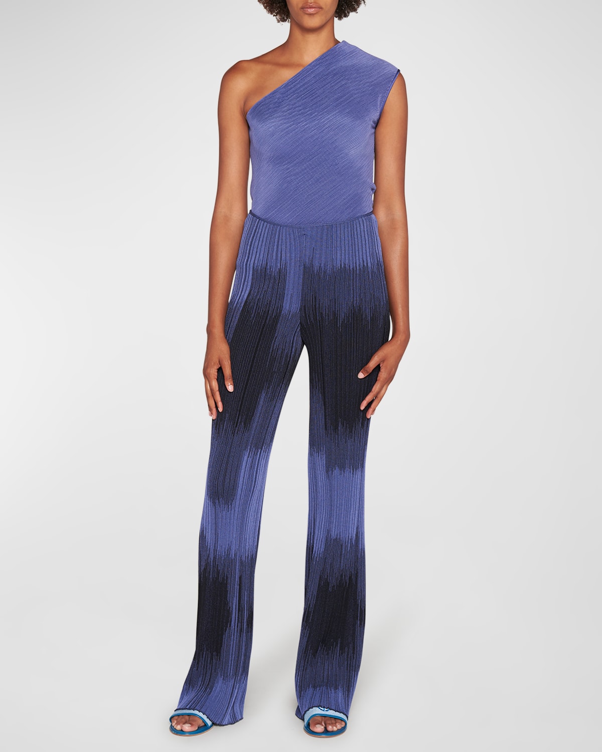 Giorgio Armani blouse in plisse silk Oneshoulder neckline Sleeveless Fitted Invisible side zip Silk Made in Italy
