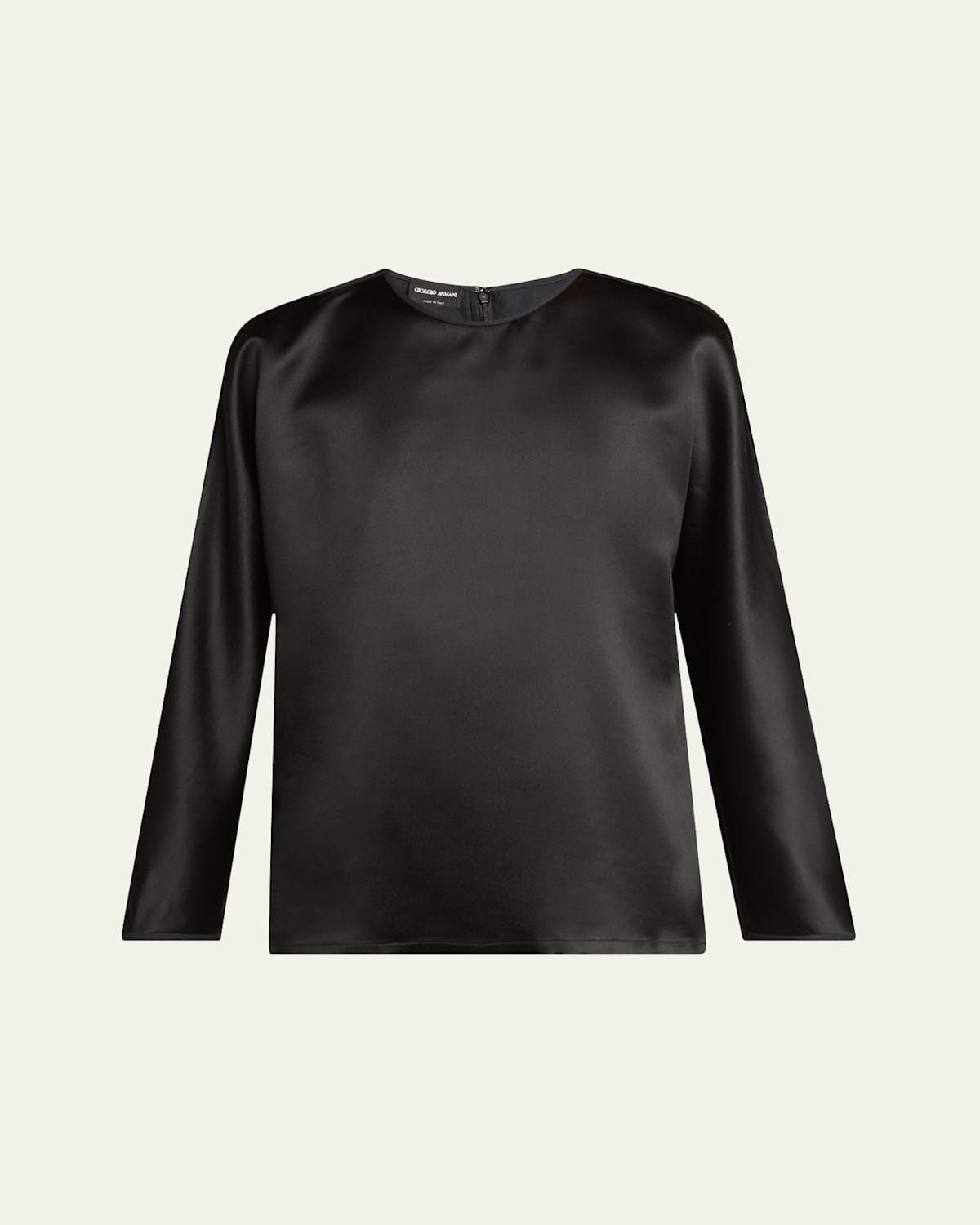 Giorgio Armani silk blouse finished with tonal piping Crew neckline Long sleeves Relaxed fit Hip length Center back zipper Silk Dry clean Made in Italy