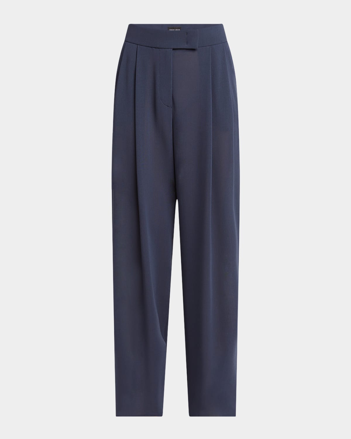 Giorgio Armani trousers finished with a pleated front High rise Side pockets; single back pocket Straight legs Full length Extended hook/zip fly; belt loops Virgin wool Dry clean Made in Italy