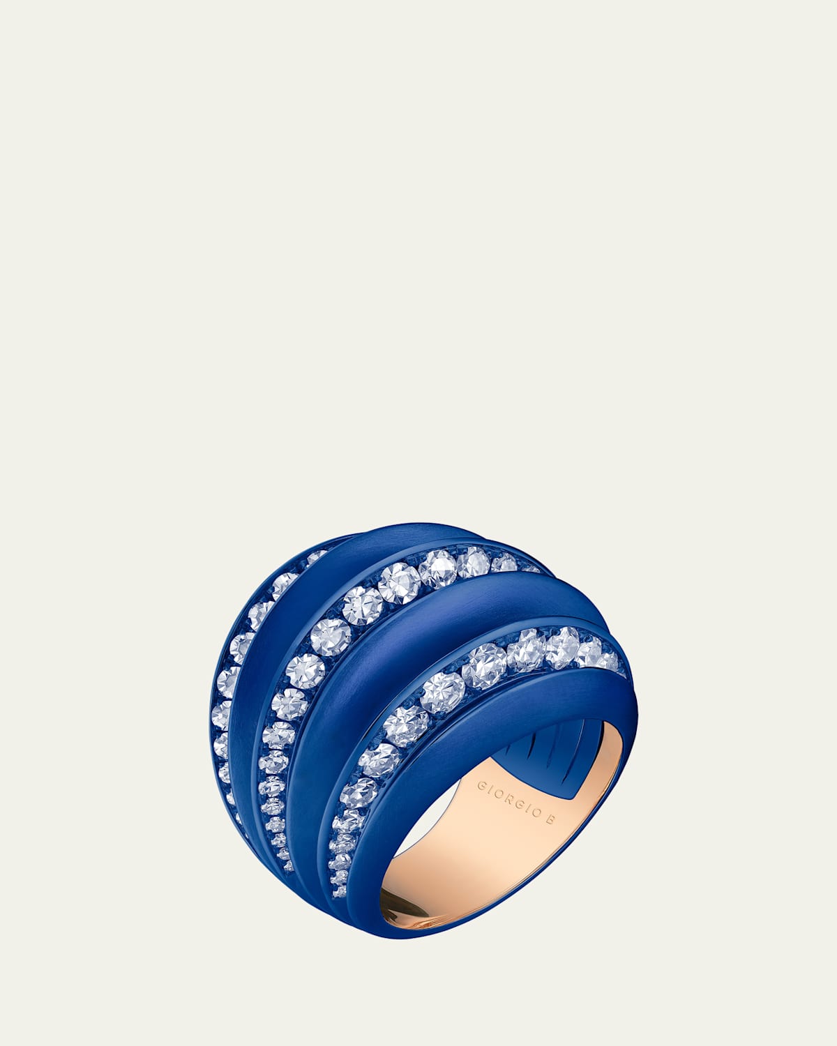 GIORGIO B openwork statement ring designed with graduating stylised palm blades From the Palma Titanium Collection Brushed blue titanium and 18karat rose gold Round white diamonds 2.04 total diamond carat weight Made in Italy