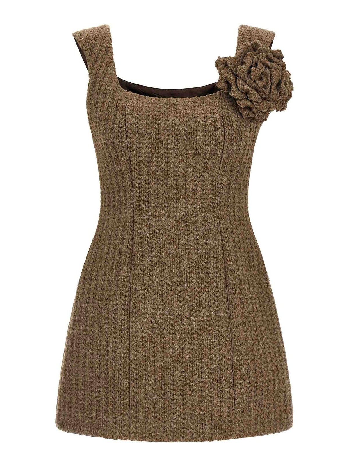 Mini-robe en laine tricotée avec encolure ronde, bretelles, broche amovible.