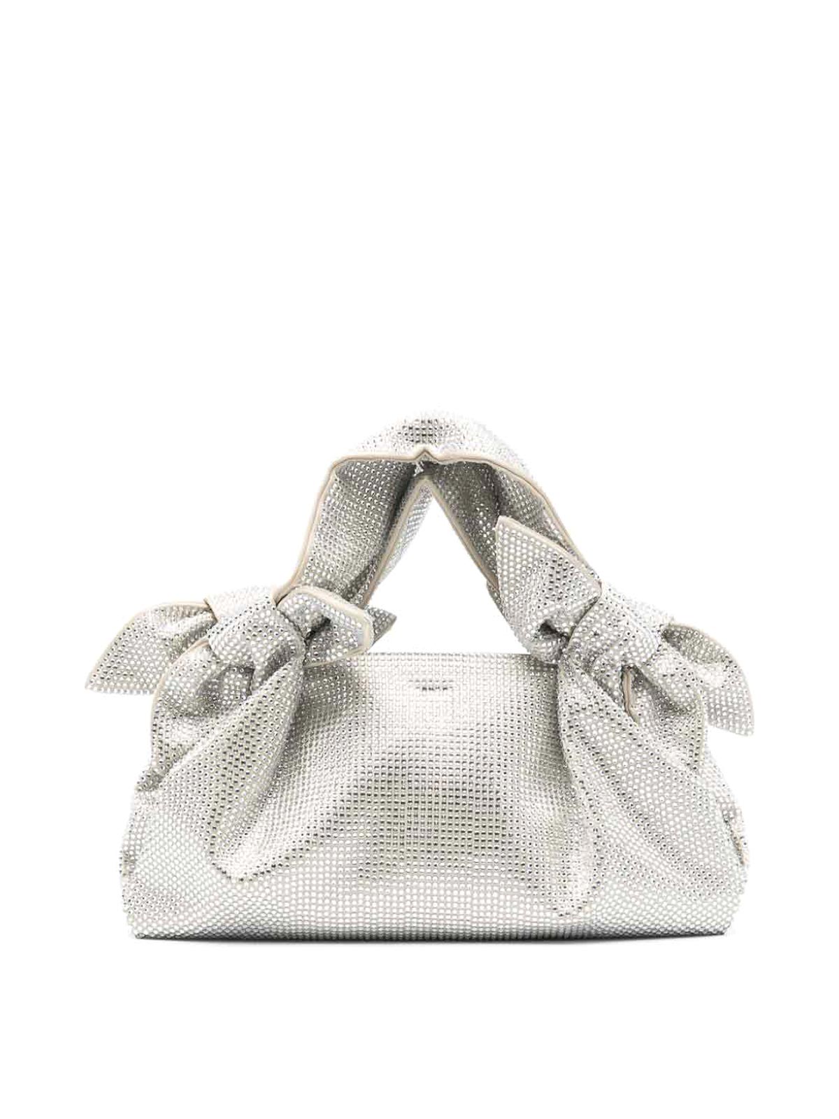 Ornement beige clair et argenté, détails en nauds, aimanté dissimulé, deux poignées supérieures, poche plaquée avec logo, compartiment principal